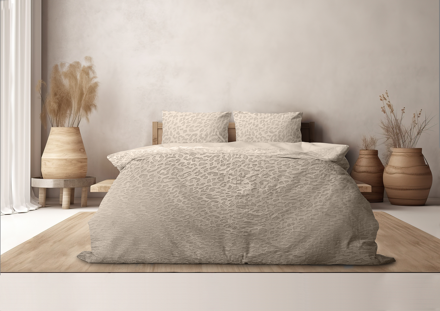 De voorzijde is gemaakt van fluweelzachte micro mink velvet met een verfijnd 3D reliëf in pantermotief, dat voel je én zie je. De achterzijde is van ademende micropercal: licht, sneldrogend en strijkvrij. Dankzij deze combinatie geniet je van het beste van beide werelden: comfort én gemak. Ideaal voor wie houdt van een slaapkamer met karakter én comfort.