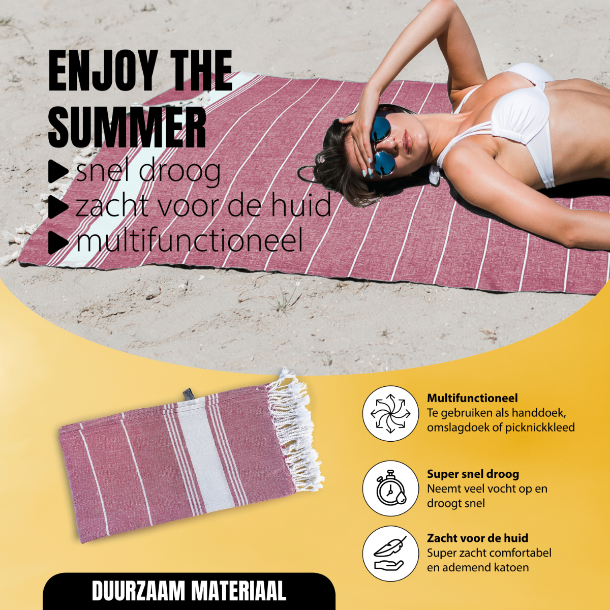 - Sneldrogend & lichtgewicht. Geen zware, natte handdoeken meer! Deze hamamdoek droogt razendsnel en is supermakkelijk mee te nemen.