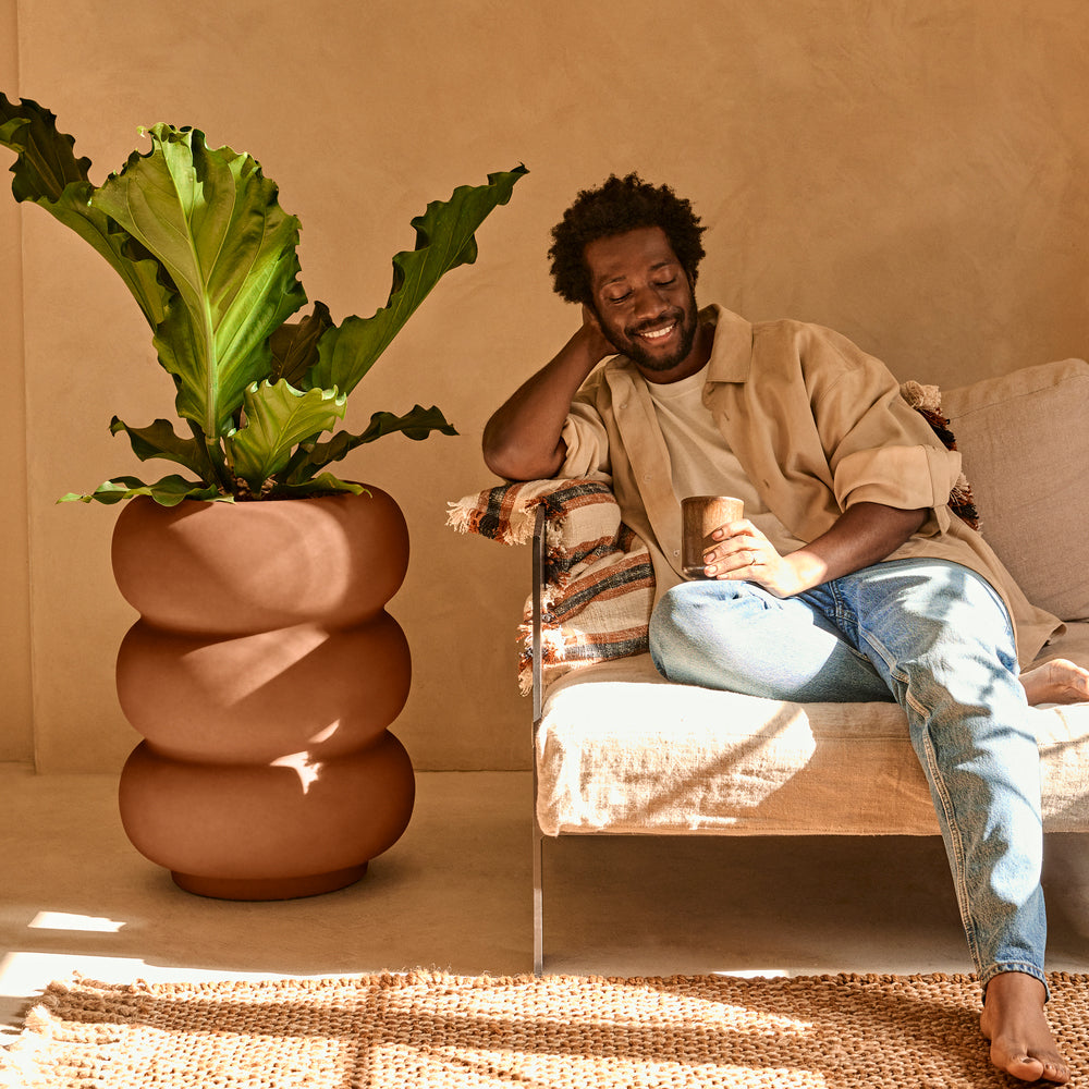 Elho Amber Roll High 43 - Karamel - Ø 43 x H 58 cm - Binnen en Buiten - 100% gerecycled