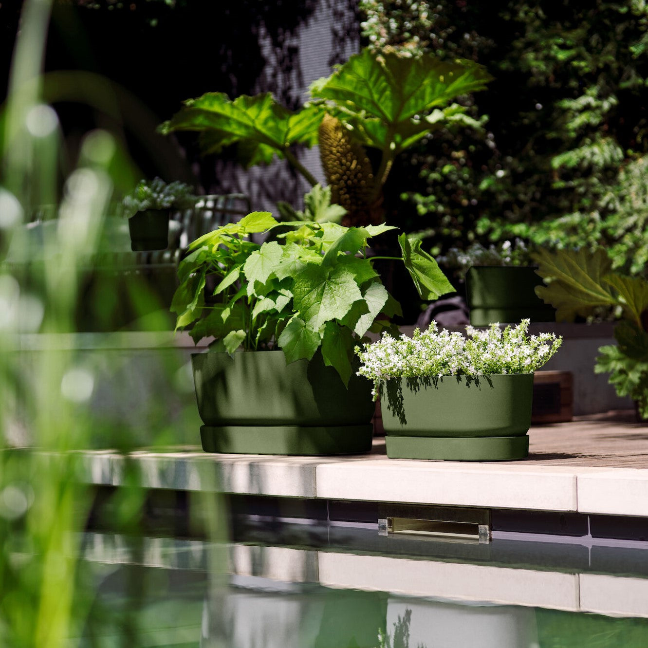 - Dankzij het geïntegreerde waterreservoir hebben de planten nooit dorst