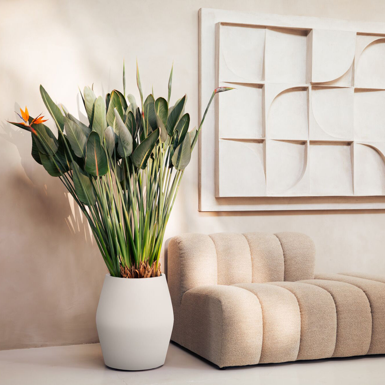 Elho June Split High 46 - Linnen wit - Ø 46 x H 53 cm - Binnen en Buiten - 100% gerecycled kunststof