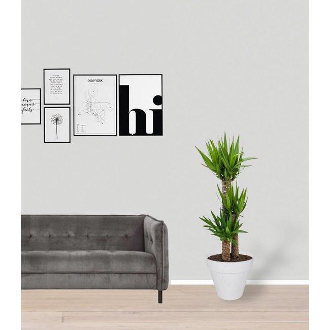 De Yucca of “Palmlelie” is een karakteristieke plant die een moderne uitstraling heeft. Door de stevige stam en puntige bladeren heeft de Yucca een stoer uiterlijk en daarnaast is het een gemakkelijke plant om te onderhouden. Al deze factoren maken de Yucca tot een ideale kamerplant.