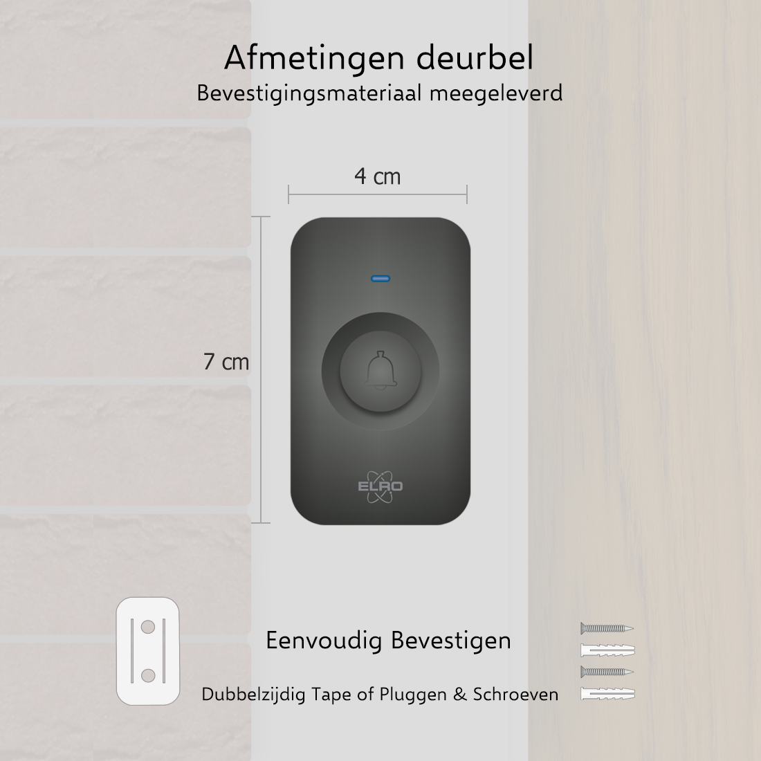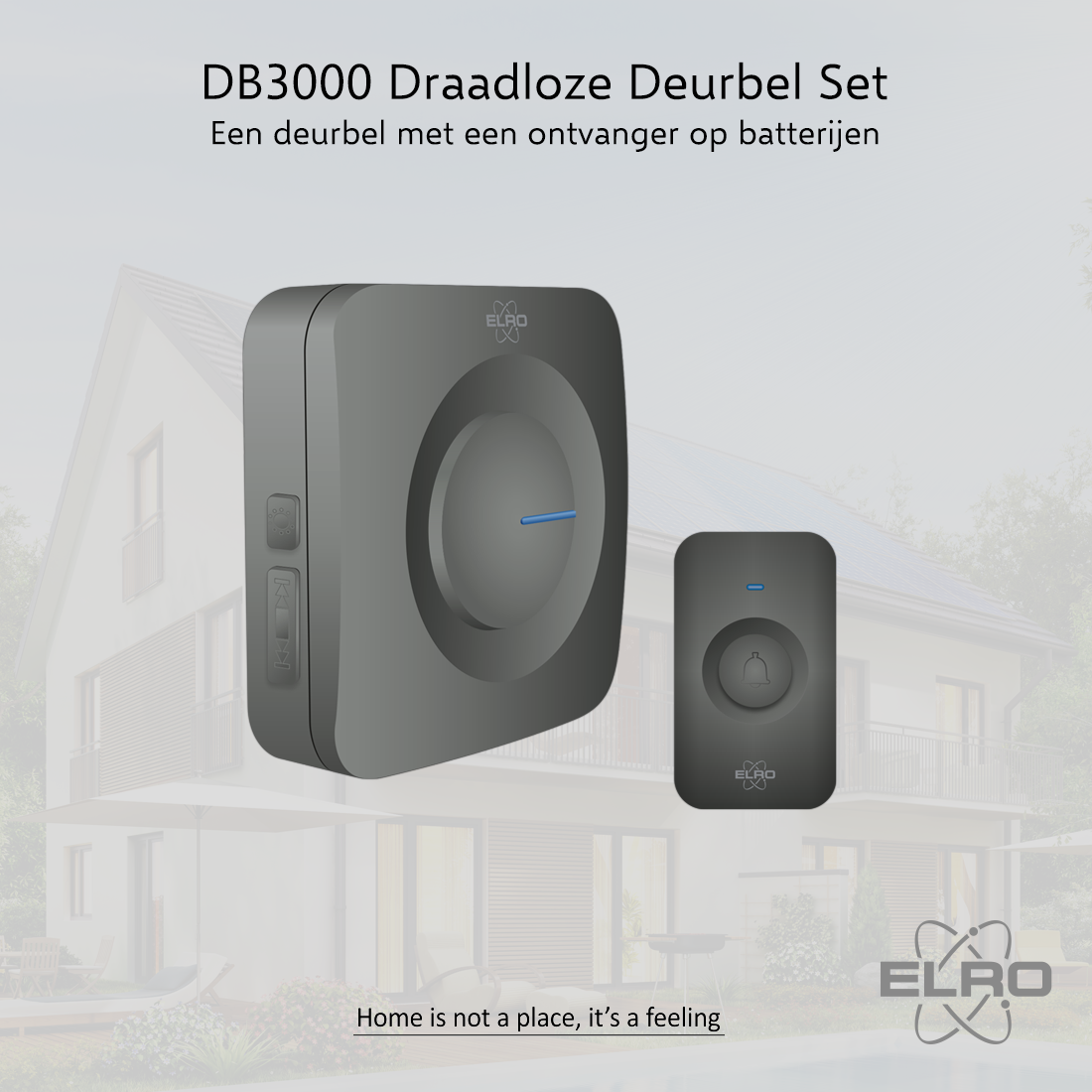 ELRO DB3000 Draadloze Deurbel Set – met Ontvanger op batterij - Zwart