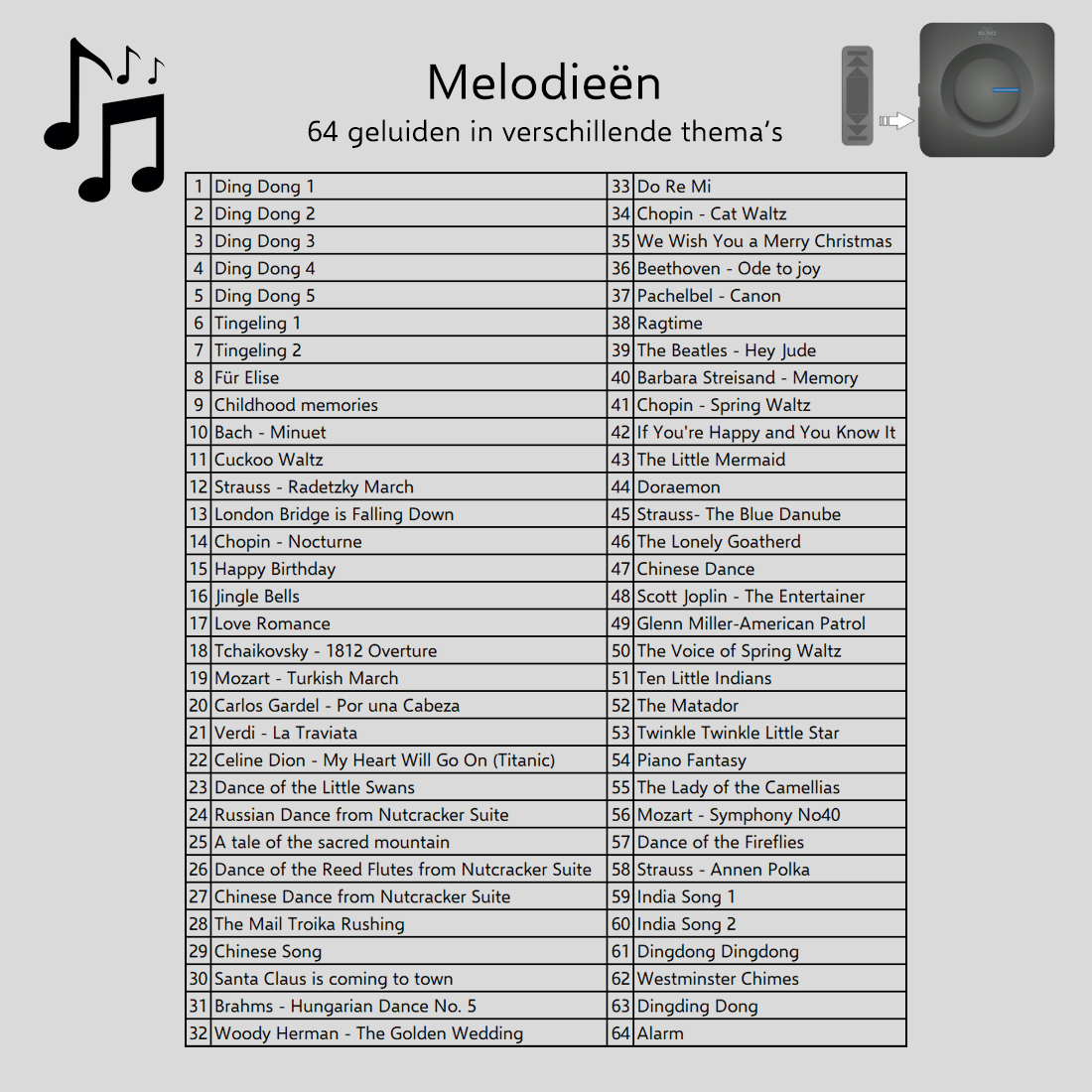 Met maar liefst 64 melodieën om uit te kiezen zit er op deze deurbel altijd wel een belgeluid dat bij jouw smaak past. Zo is deze deurbel geheel aan te passen aan jouw persoonlijke voorkeur. Het volume van de deurbel gaat tot wel 110dB en je kunt dit volume instellen op 5 verschillende niveaus. Zo kun je bijvoorbeeld het volume van de bel dempen wanneer een kind ligt te slapen en het volume hoger zetten wanneer je een feestje hebt. De binnen unit beschikt tevens over led verlichting welke oplicht wanneer wordt aangebeld.