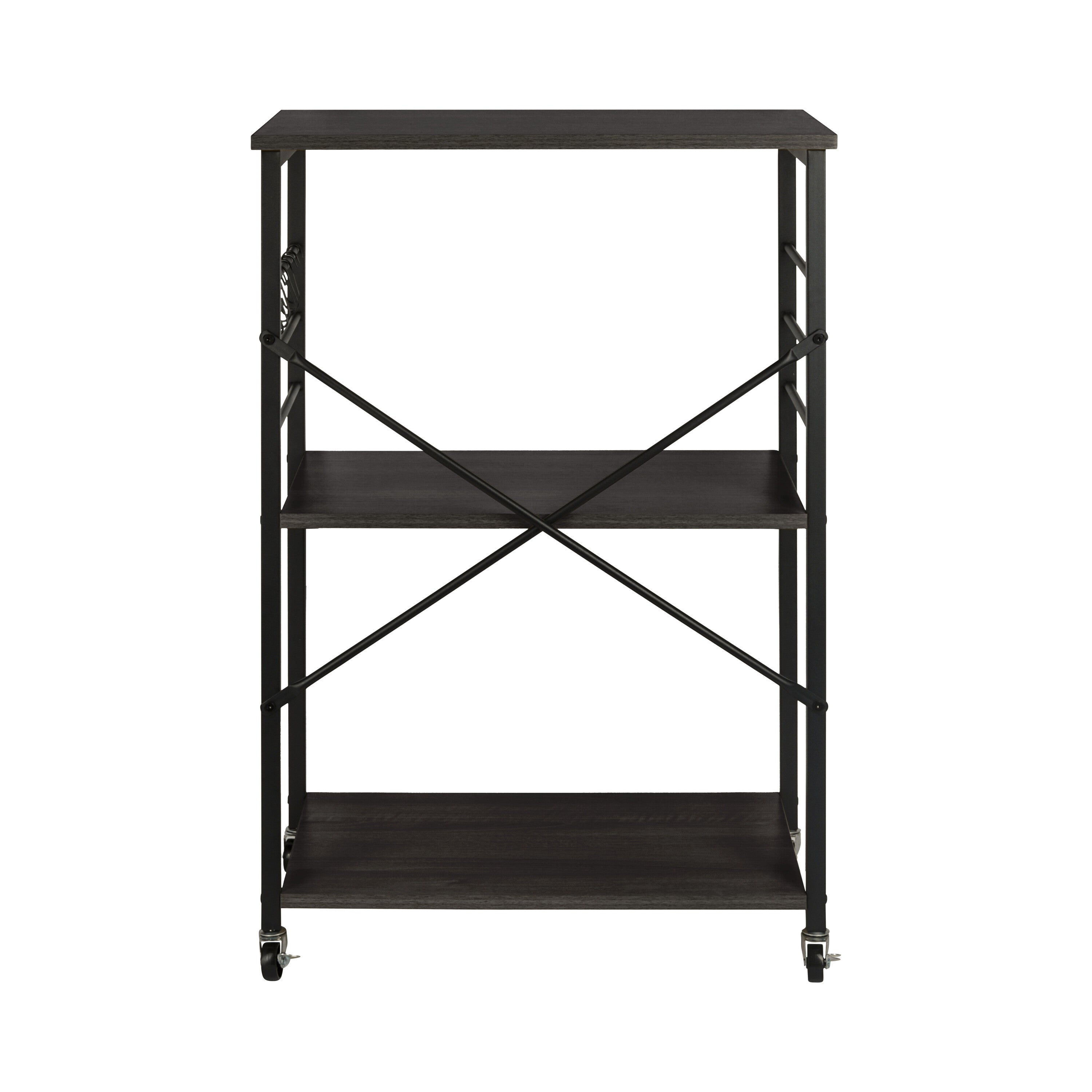 De ERRO keukentrolley is een handige en stijlvolle opbergoplossing voor elke keuken. Met drie ruime planken biedt deze serveerwagen voldoende opbergruimte voor keukengerei, ingrediënten en zelfs keukenapparaten. Dankzij de wieltjes met remfunctie verplaats je de trolley moeiteloos door de keuken, of gebruik je hem als vast keukenrek op wielen. De serveerwagen heeft een zwart metalen frame en stevige planken van spaanplaat. Voordelen: • Drie planken voor extra opbergruimte • Wieltjes met rem voor extra stabiliteit • Draagvermogen van 80 kg • Geschikt voor kleine ruimtes: B60 x D40 x H89 cm • Materiaal: spaanplaat / metaal