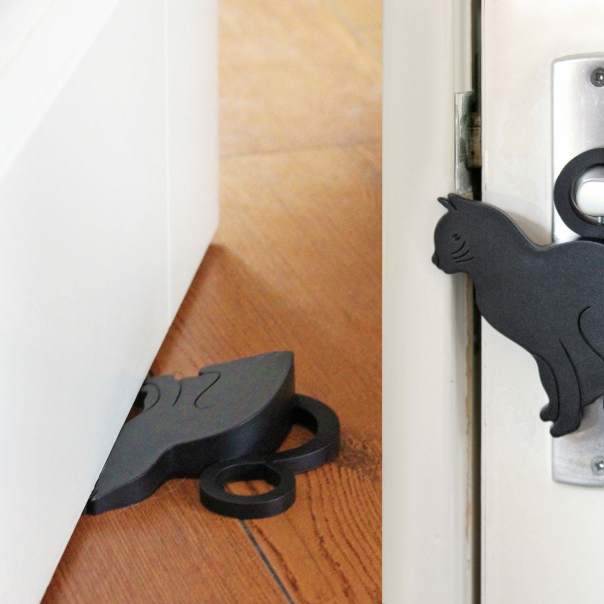 Esschert Design Deurstopper - kat - kunststof - zwart - 11 x 9 cm