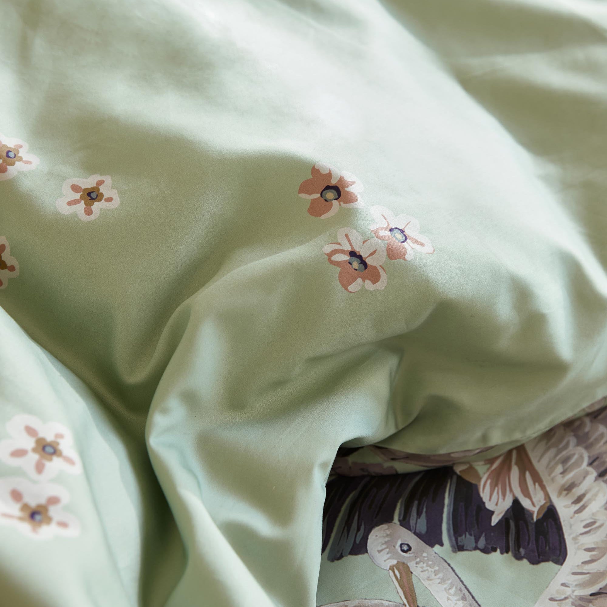 - Met sprookjesachtige print van kraanvogels en varens