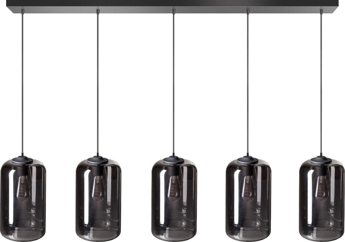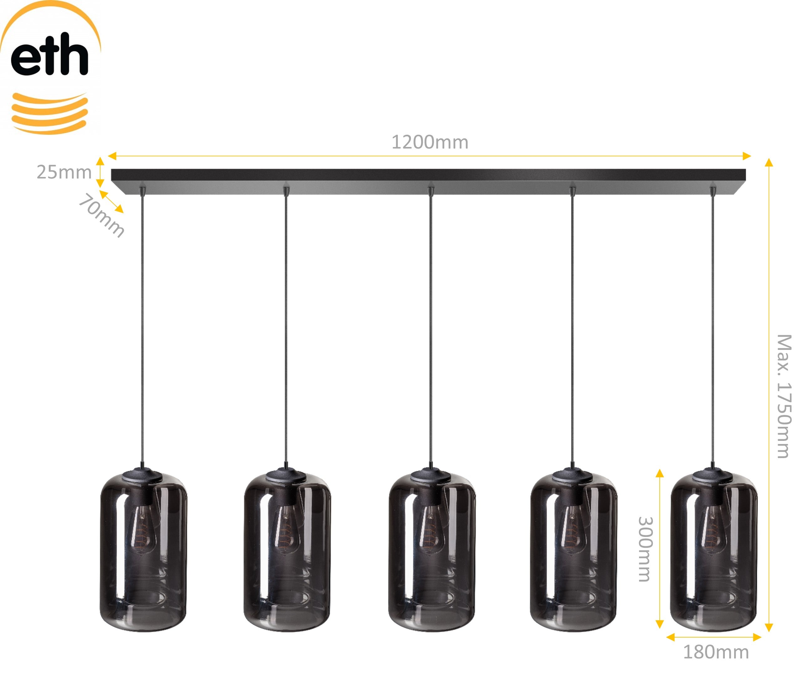 Hanglamp The John van het merk ETH is niet alleen mooi wanneer hij aan staat. Overdag is het ook zeker een plaatje om naar te kijken. De lampenkap is voorzien van smoky glas die hangt aan een metalen frame met een zwarte poedercoating. Door het gekleurde glas geeft de lichtbron sfeervol licht, waardoor het licht niet te fel is. De John lampencollectie bestaat uit een vloer- en tafellamp, en 2 hanglampen.