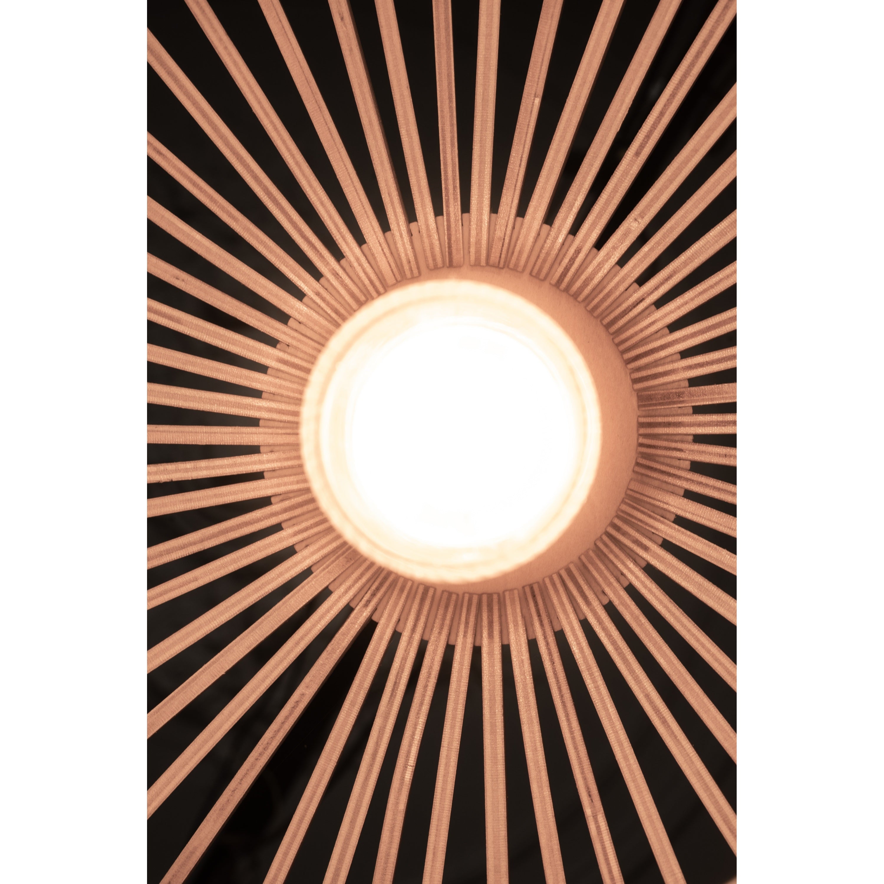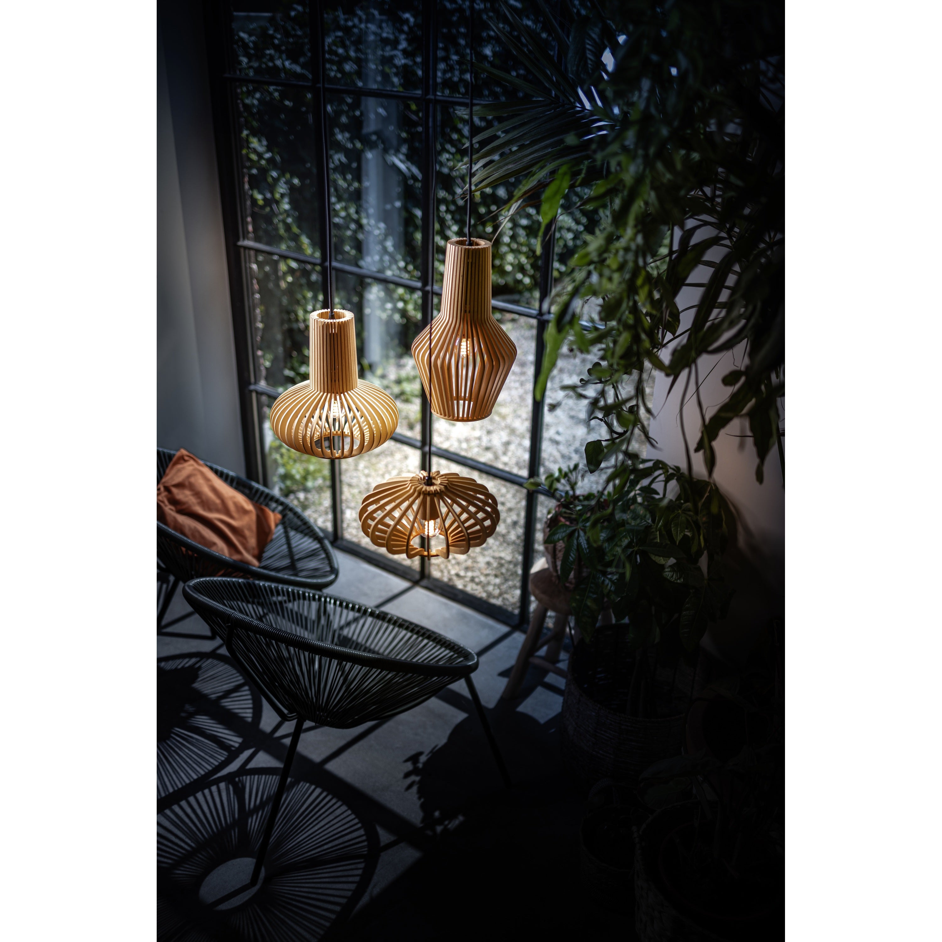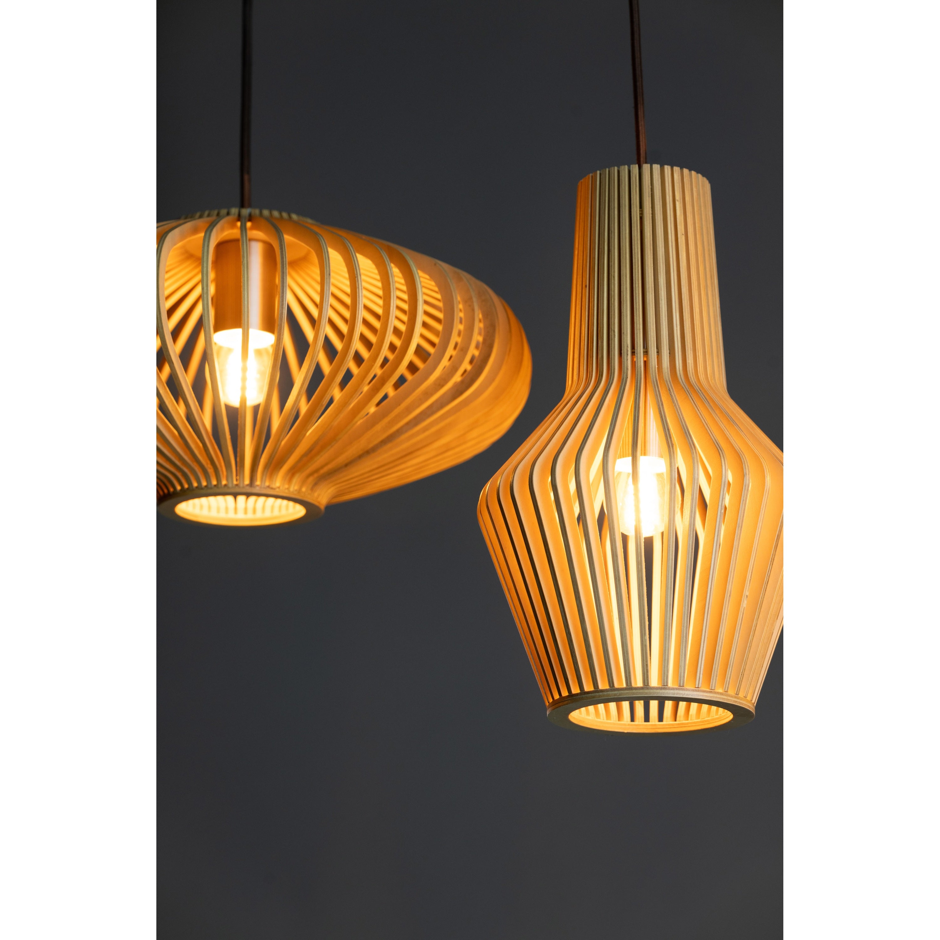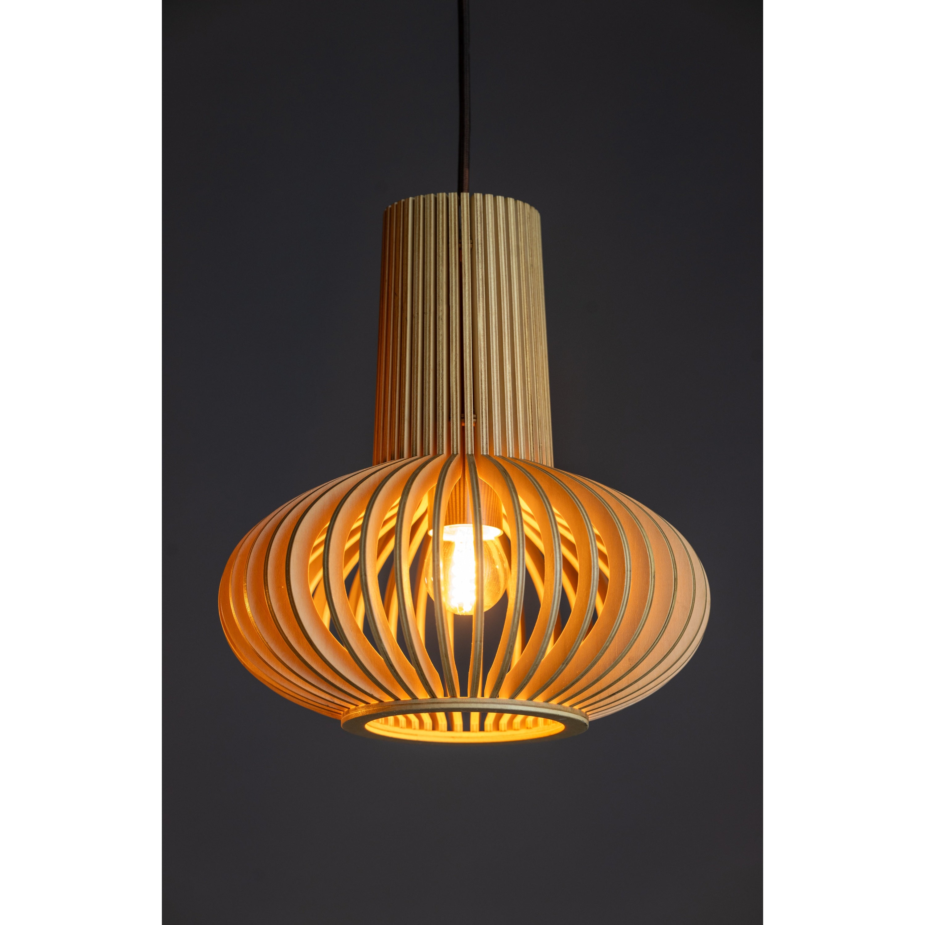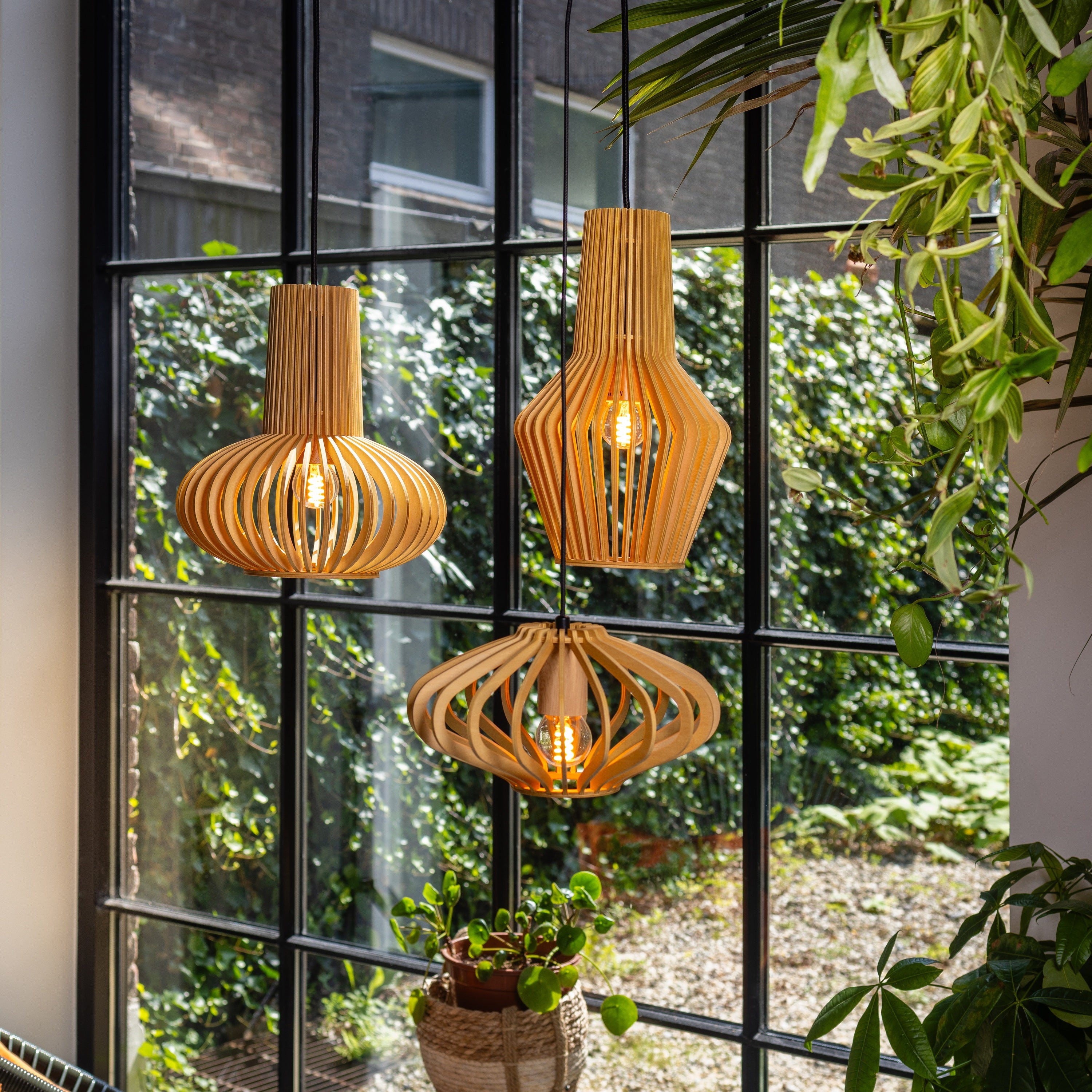 Deze prachtige houten hanglamp van het merk ETH past in elk interieur,of dat nu modern of landelijk is hij komt overal goed tot zijn recht. De lamp heeft een E27 fitting en wordt zonder lichtbron geleverd. De lamp is te dimmen door middel van een wanddimmer of via de wandschakelaar met een 3 stappen lichtbron.