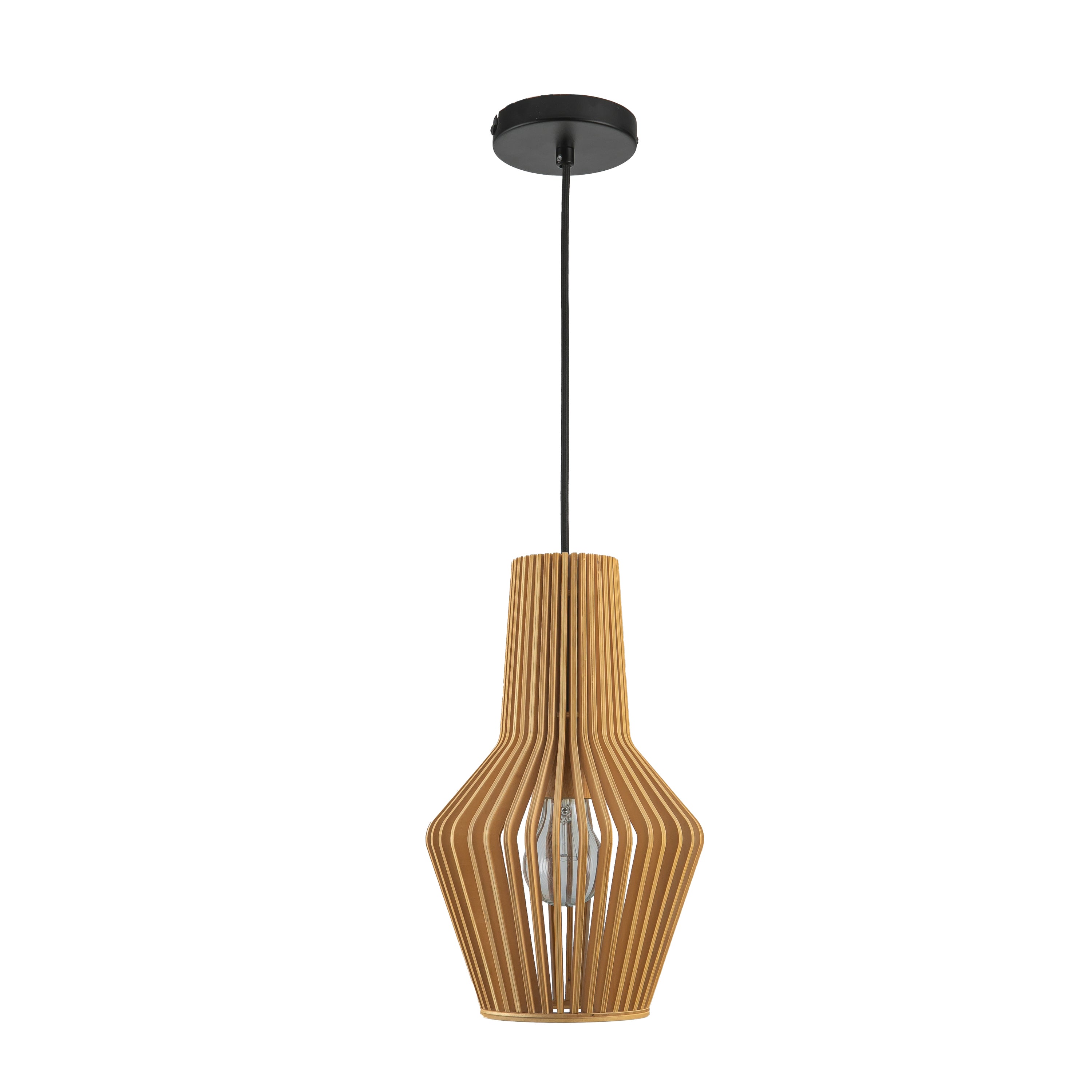 Deze prachtige houten hanglamp van het merk ETH past in elk interieur,of dat nu modern of landelijk is hij komt overal goed tot zijn recht. De lamp heeft een E27 fitting en wordt zonder lichtbron geleverd. De lamp is te dimmen door middel van een wanddimmer of via de wandschakelaar met een 3 stappen lichtbron.