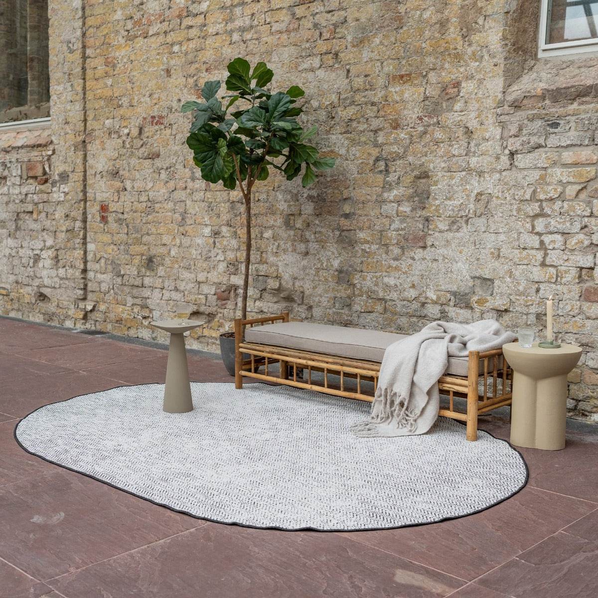 Kies de vorm die bij jouw ruimte past: rechthoekig, rond of ovaal, met afmetingen van 160x230 cm, 200x290 cm, 240x340 cm, 280x380 cm (rechthoekig), 200 cm en 240 cm (rond), of 160x230 cm, 200x290 cm, 240x340 cm (ovaal). Met een dikte van 10 mm voelt het kleed comfortabel aan en biedt het een zachte ondergrond. Dankzij de duurzame en weerbestendige materialen blijft het Dahl buitenkleed lang mooi en is het eenvoudig te onderhouden. Perfect voor een strakke en eigentijdse buitenomgeving!