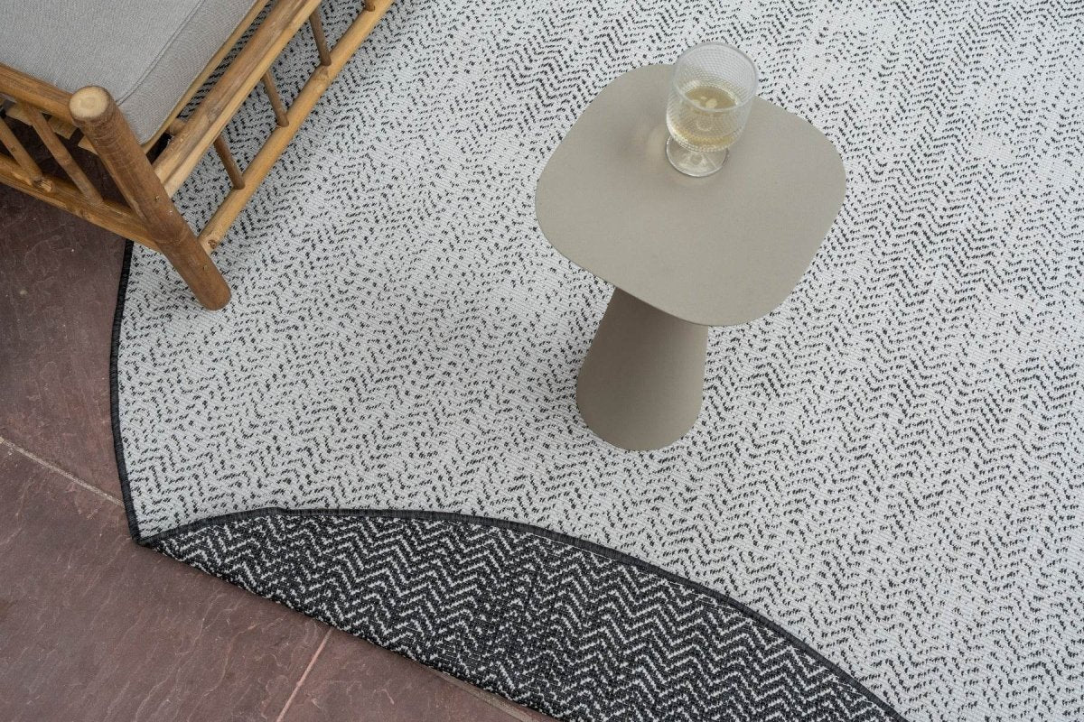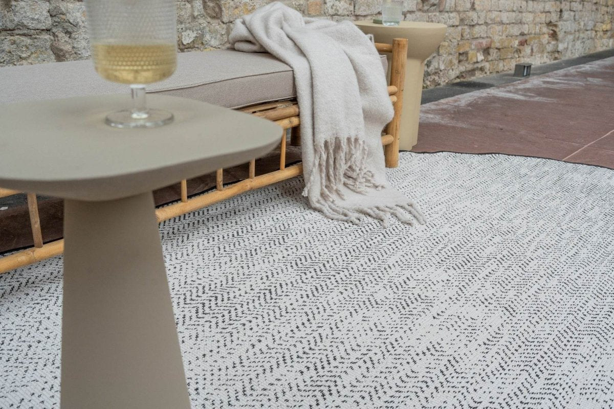 Geef je buitenruimte een moderne en stijlvolle uitstraling met het Dahl buitenkleed. Dit elegante kleed heeft een modern patroon, waardoor het perfect past in zowel strakke als sfeervolle buitenomgevingen. Verkrijgbaar in de tijdloze kleuren zwart en grijs, biedt het een subtiele en verfijnde toevoeging aan je terras, balkon of tuin.