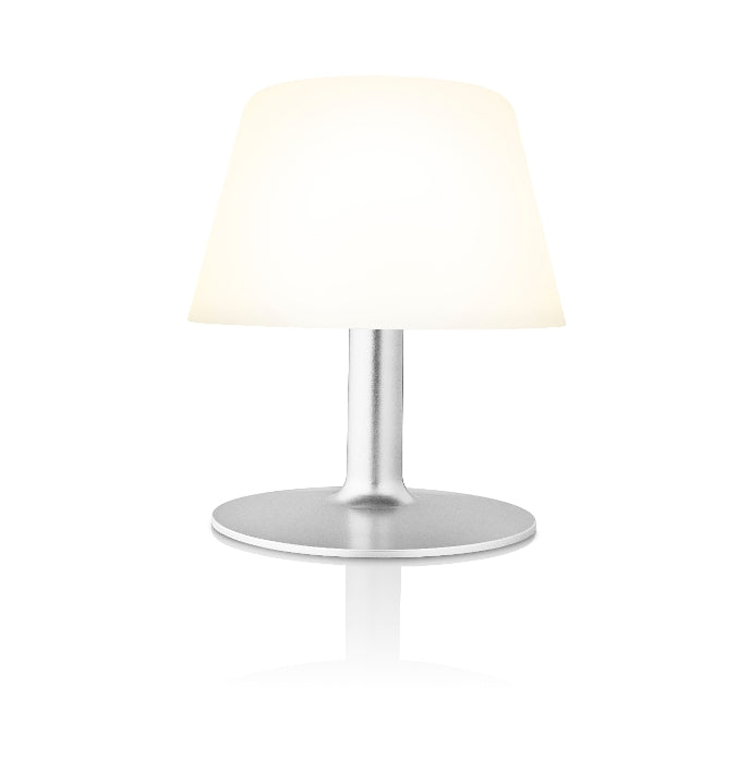 De SunLight tafellamp van Eva Solo is functioneel en sfeervol! Plaats deze stijlvolle lamp in je tuin, patio of balkon en geniet van het warme licht. De lamp werkt op zonne-energie en bevat een verborgen zonnepaneel voor een esthetisch design. Na een dag in de zon opgeladen te zijn (8 uur), kan deze lamp tot wel 20 uur lang licht geven. De lamp gaat automatisch aan wanneer het donker wordt, maar bevat ook een aan- en uitknop voor handmatige bediening. Na 6 uur gaat de lamp automatisch weer uit om stroom te besparen. Verder is de tafellamp voorzien van een oplaadbare batterij en een LED-lamp.
