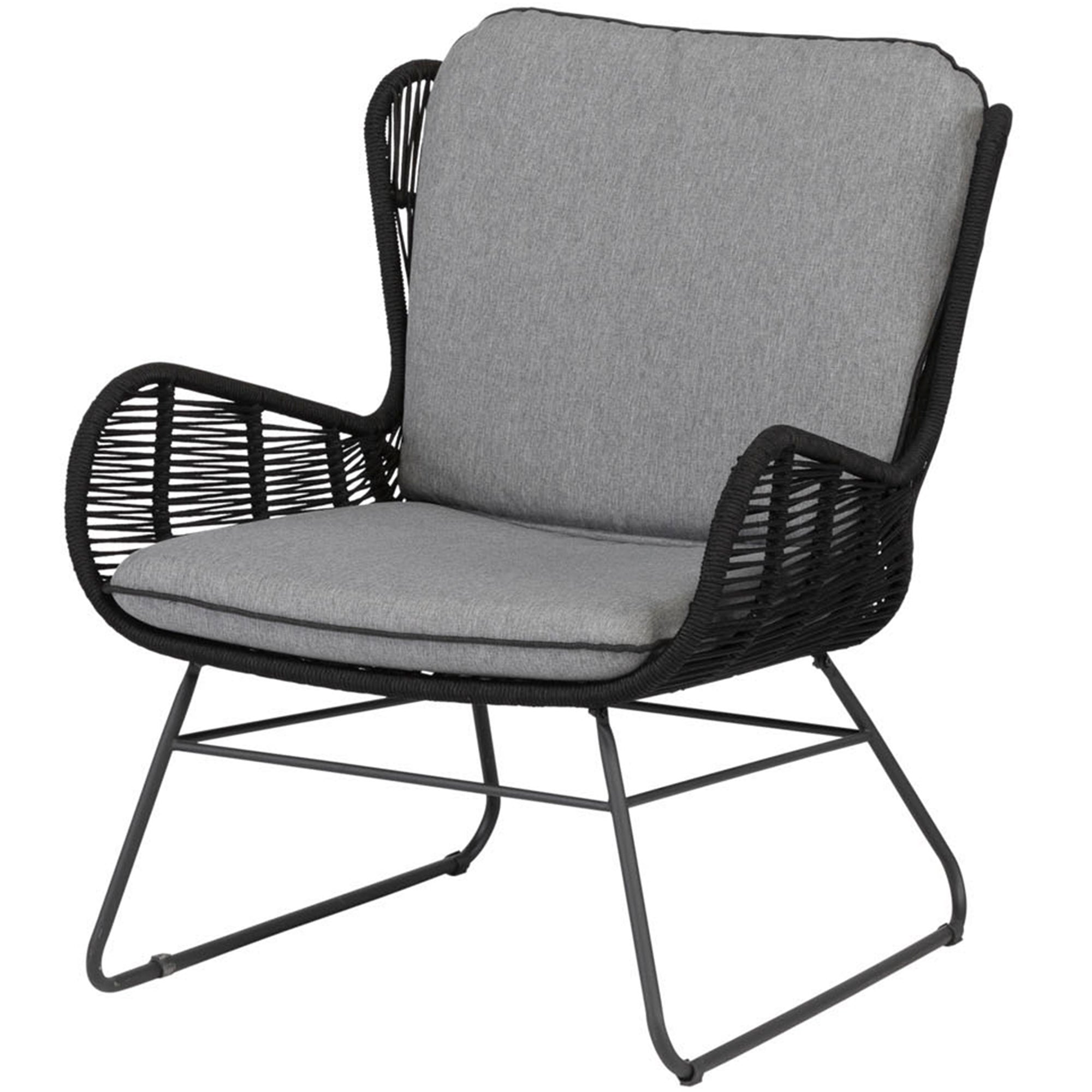 De Grace serie van Exotan is gemaakt van een stalen frame met een matzwarte coating. Het draadwerk is gemaakt van outdoor bestendig touw in een donker antracieten tint. Het zitkussen wordt bijgeleverd en heeft een donkergrijze kleur. De vulling is van standaard foam en hierdoor niet bestand tegen de nacht of winter, het is aangeraden om de kussens na gebruik direct op te bergen. Afmetingen