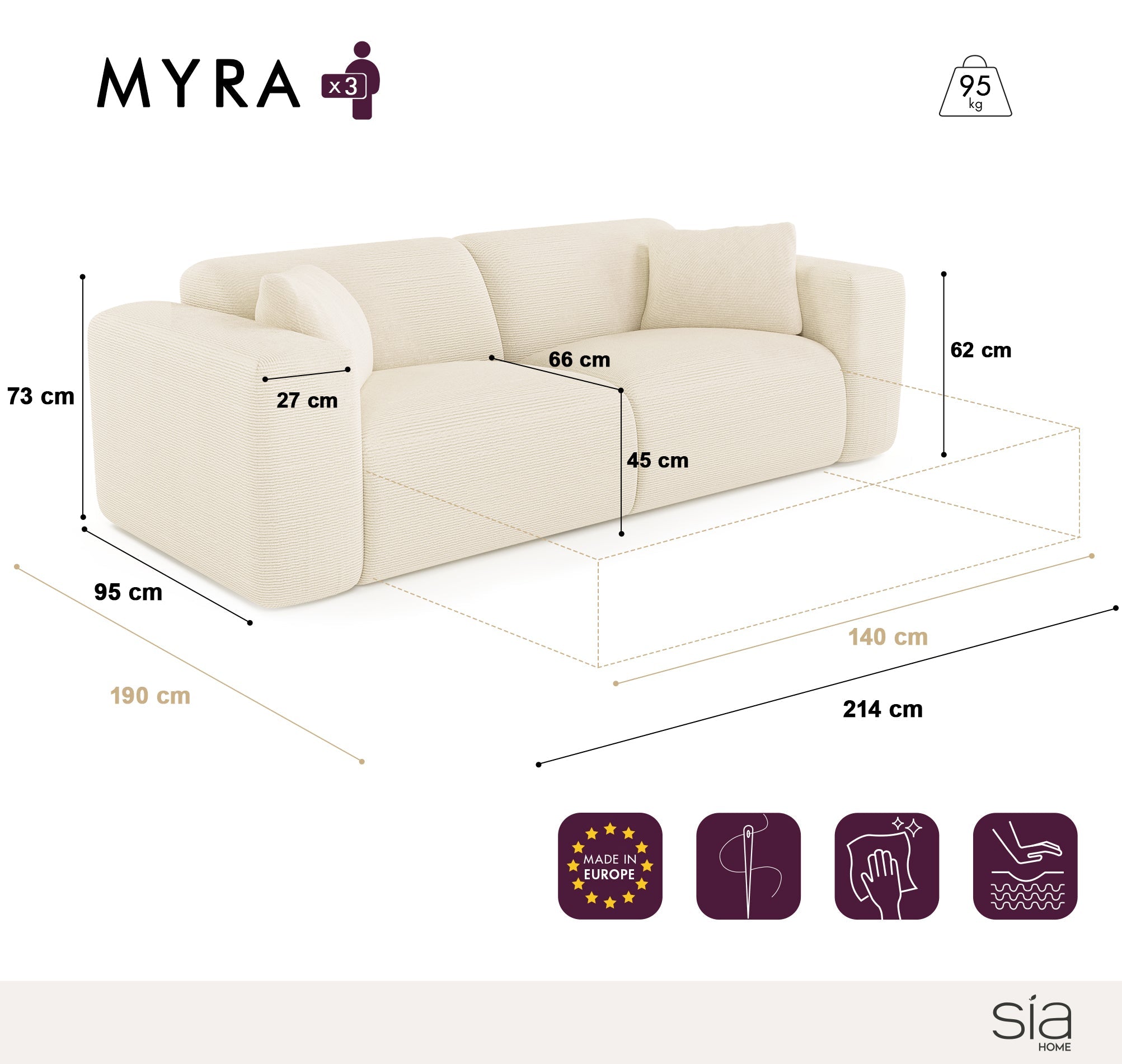 De Myra bank is de perfecte harmonie tussen comfort en stijl. Het merk SIA Home, opgericht in 1963 door Sonja Ingegerd Andersson, is vandaag de dag een belangrijke referentie in de wereld van decoratie.