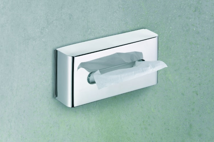 Wil je je tissues op een elegante manier bewaren in plaats van in de kartonnen doos? Dan zou je deze Faber tissuebox kunnen proberen. Door de glanzende edelstalen behuizing zijn je tissues op een mooie en nette manier opgeruimd. De box is verder voorzien van 4 rubberen pootjes tegen krassen. Ook kun je ervoor kiezen om hem op te hangen zodat hij geen ruimte op de wastafel in beslag neemt.