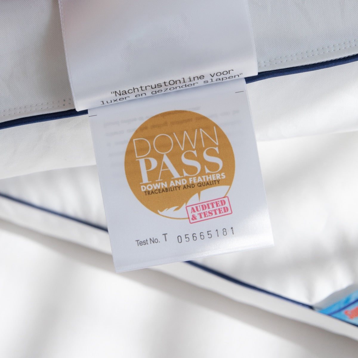 Het internationale Downpass Beter-Leven-Keurmerk certificaat garandeert dat ons dons afkomstig is van hoogwaardige kwaliteit en geeft de garantie, dat het dons en de veren die als vulling worden gebruikt op verantwoorde wijze zijn geproduceerd en afkomstig zijn uit streng gecontroleerde toeleveringsketens. Deze eenden en ganzen hebben daarom een prettig, vrij en diervriendelijk leven hebben gehad, onder de meest optimale omstandigheden.