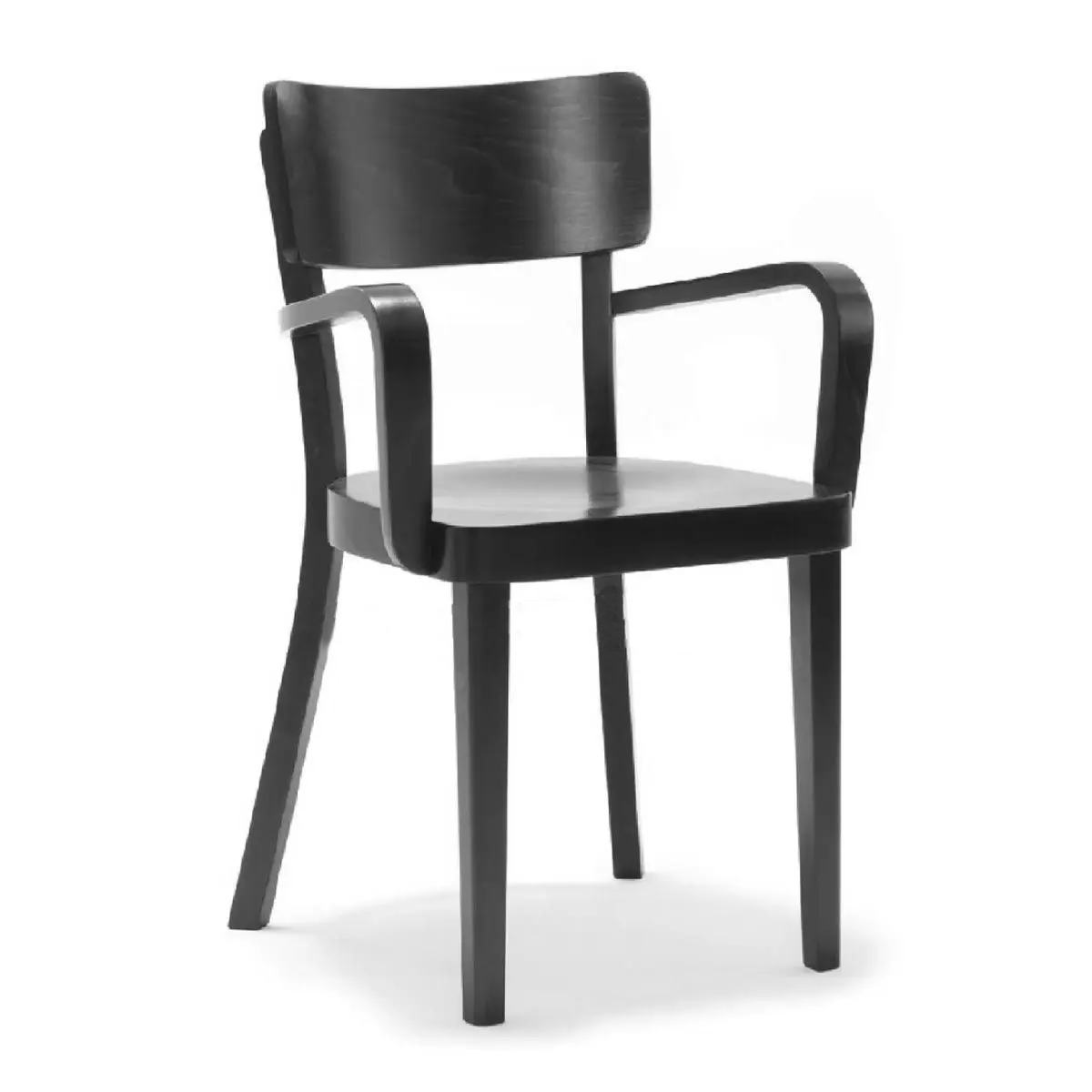 Het licht gewelfde zitvlak, de stevige armleuningen en de ronding in de rugleuning zorgen voor een uitstekend zitcomfort. Het ingetogen design maakt deze stoel geschikt voor thuis, op kantoor, in de kantine of de horeca. Deze stevige houten stoel is een jonge telg uit de klassieke buighoutcollectie van Thonet. Fameg maakt houten meubels volgens de meer dan honderd jaar oude werkwijze van deze beroemde meubelmakersfamilie. De elegante lijnen en prachtige afwerking van deze stoel spreken voor zich.