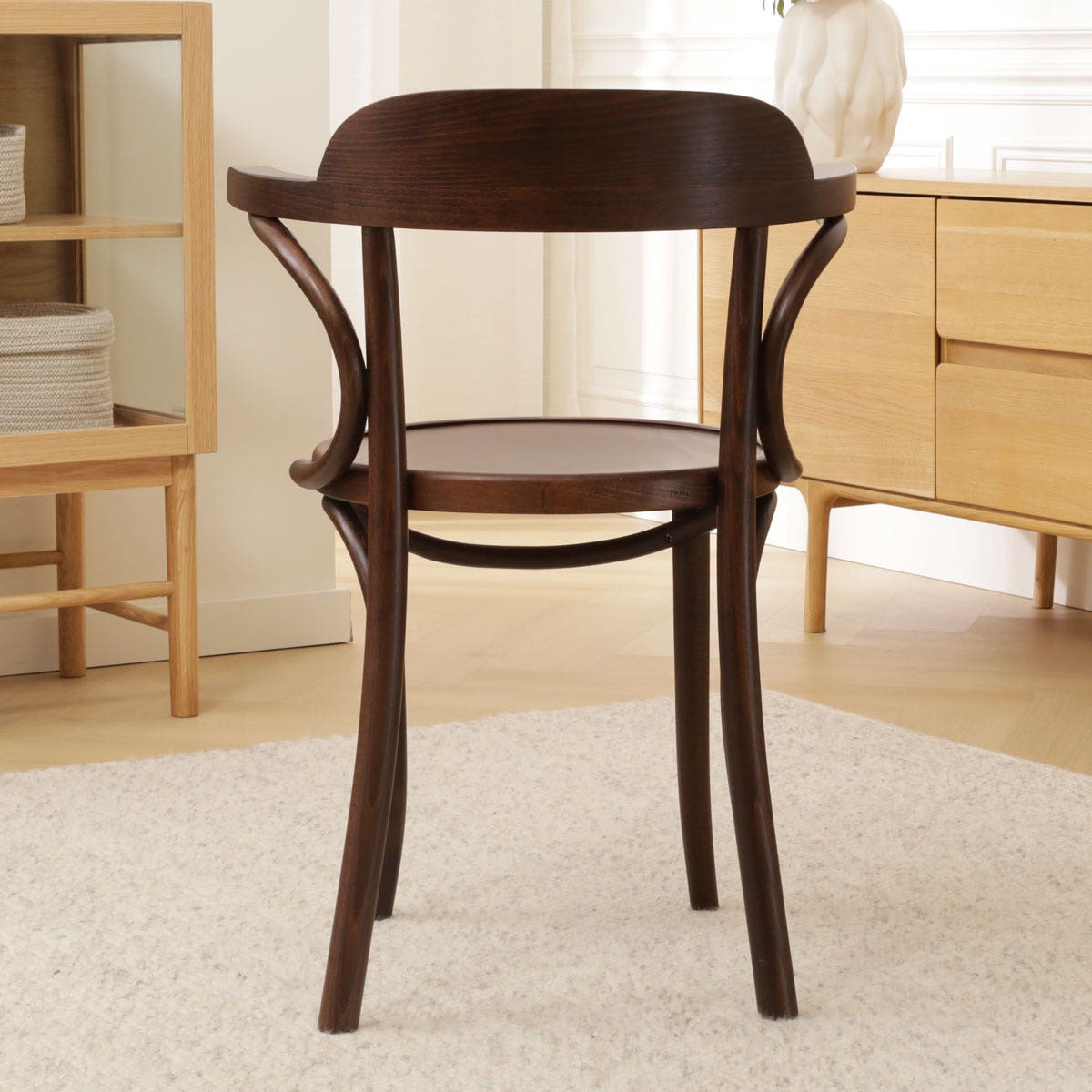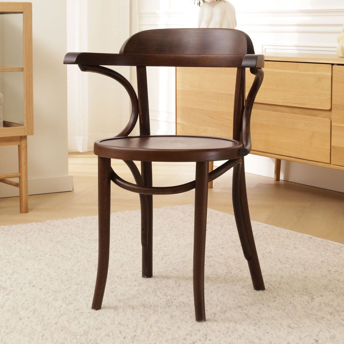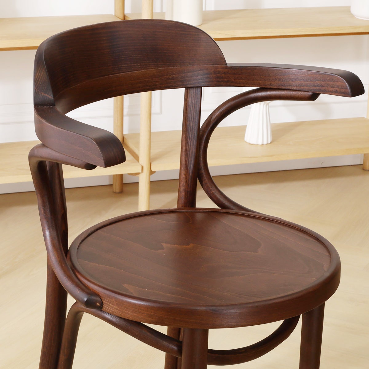 De ronde rugleuning zorgt ervoor dat je heerlijk kunt genieten van een avondje natafelen of een dag thuis werken zal ook geen probleem zijn in deze armstoel. Deze armstoel is gemaakt van sterk, gebogen beukenhout en door de rondingen krijgt de houten eetkamerstoel een klassieke touch. Door het mooie buighout en de armleuningen is dit een stoel met karakter. Kortom, hou jij van design en meubels met karakter, dan is deze stoel perfect voor jou!