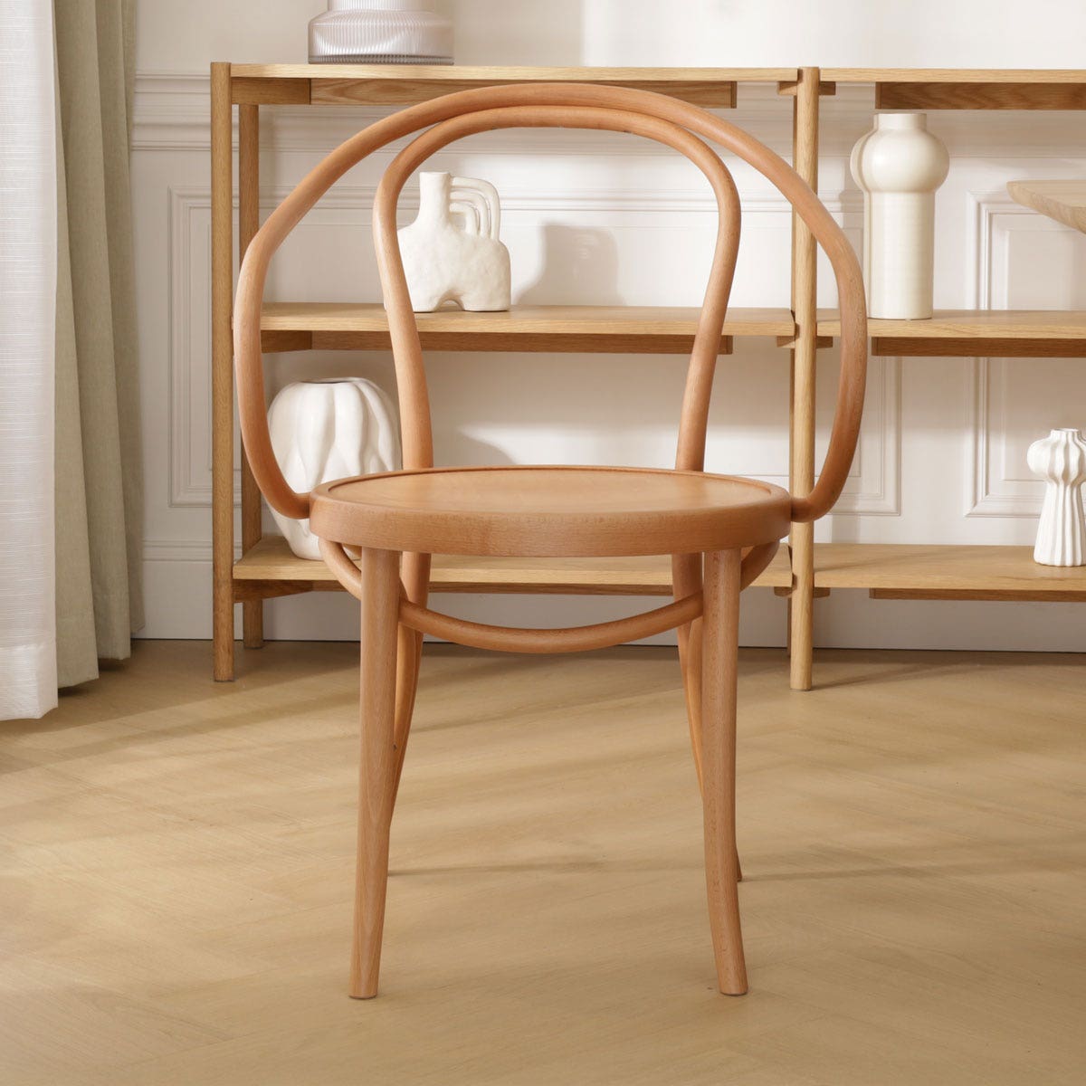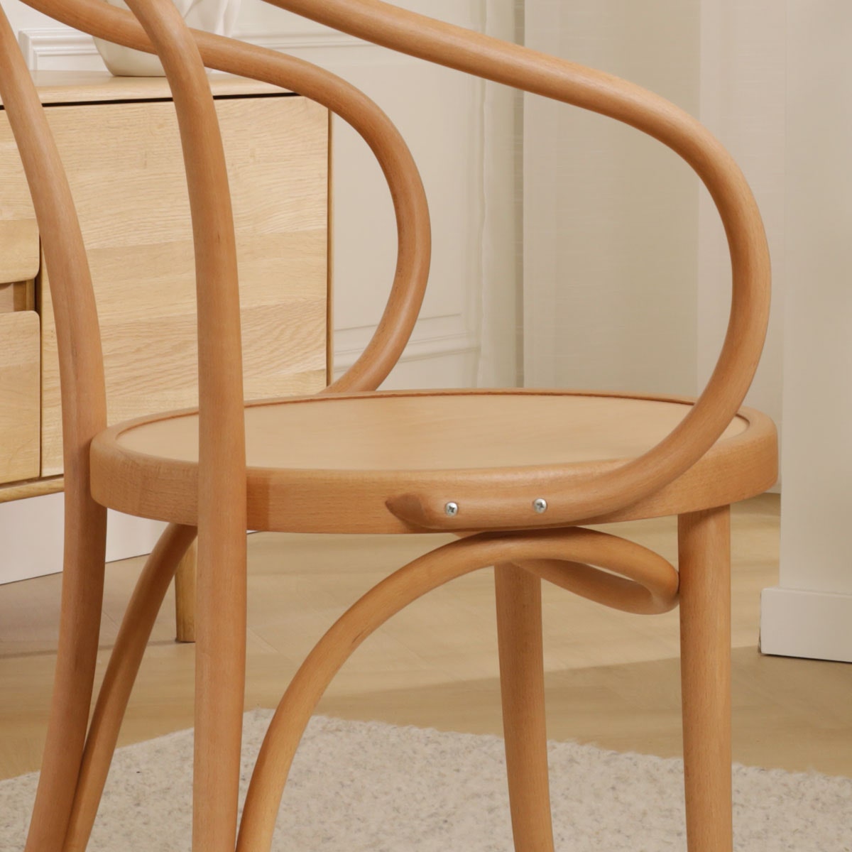 Deze bijzondere, tijdloze klassieker van Thonet heeft comfortabele armleuningen en een rond zitvlak. De zwierige lijnen en luchtige uitstraling van deze buighouten stoel maken hem al decennialang favoriet. Als je goed kijkt, zie je in deze armstoel de vormen van de iconische Thonet No.18 eetkamerstoel terugkomen. De twee klassiekers zijn ook heel mooi met elkaar te combineren. Het luchtige design maakt de Venice No.9 armstoel zeer geschikt voor restaurants en cafes, maar ook voor een gezellig hoekje. De kunstzinnige, organische vormen van deze armstoel maken hem al 100 jaar razend populair. De beroemde Zwitserse architect Le Corbusier noemde hem adellijk. Andere fans waren kunstenaars als Renoir en Toulouse-Lautrec, die deze Thonet stoel regelmatig lieten figureren in hun schilderijen.