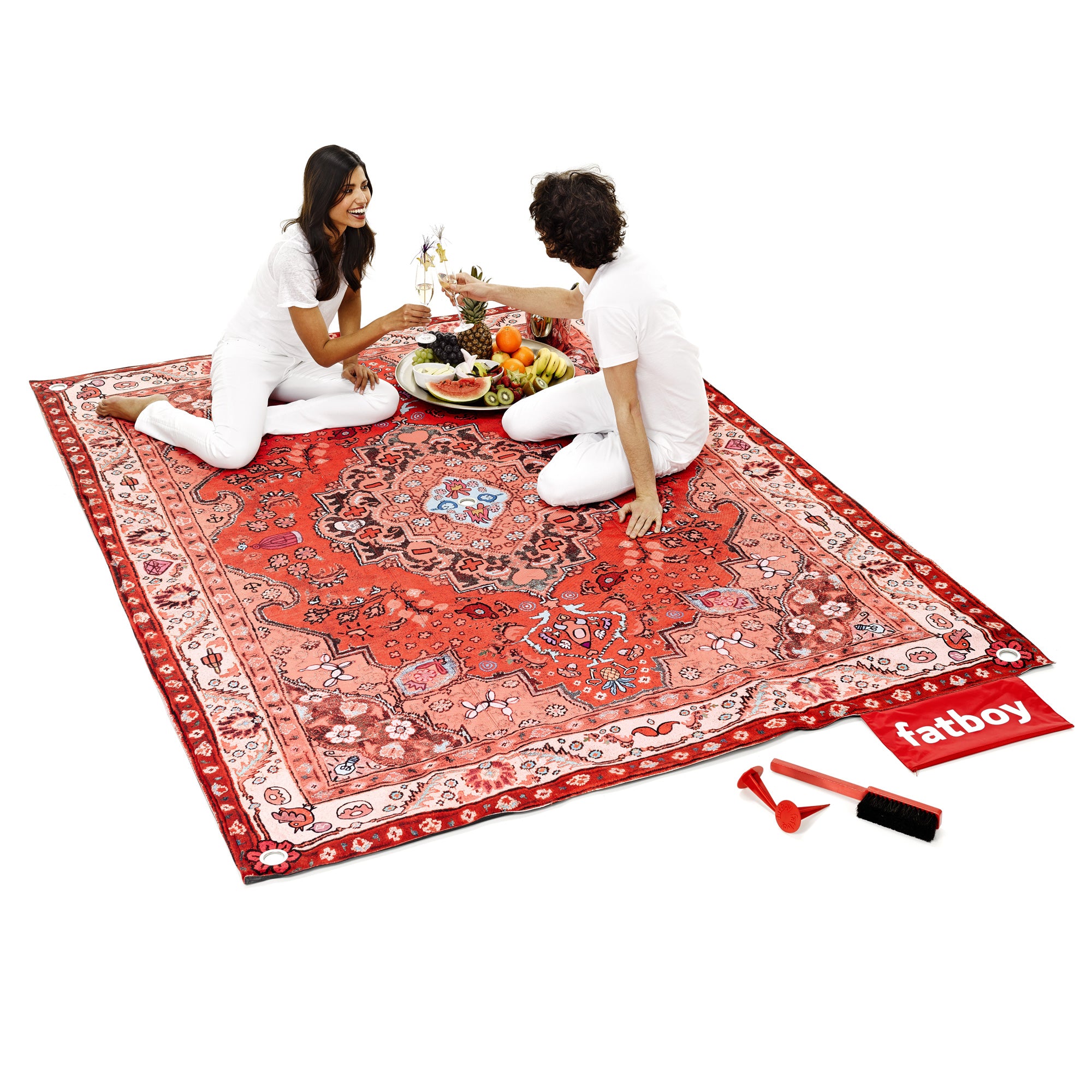 Oosters motief Een dagje picknicken met het gehele gezin, al je vrienden of romantisch met z'n tweeën! Het Fatboy Picnic loungekleed is een vloerkleed, picknickkleed en vloerbedekking in één! Het kleed heeft namelijk een motief van een oud tapijt maar is vervaardigd uit polyester met een waterafstotende coating. Hierdoor is het kleed buiten te gebruiken. Ook kun je een parasol opzetten met het gat in het midden van het kleed. Het karakteristieke Fatboy logo is een multifunctioneel tasje die ruimte biedt voor een telefoon of sleutels. Erg handig!