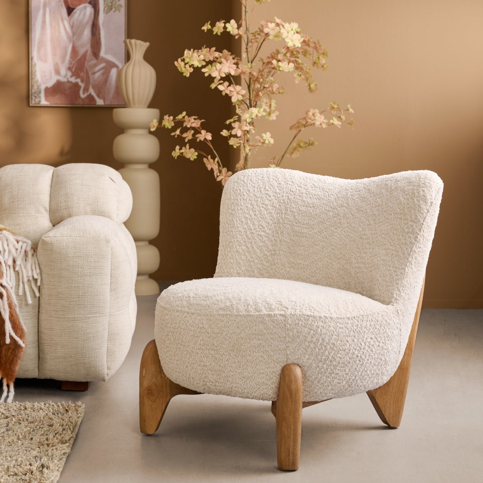 Fauteuil Bara is een echte blikvanger in elke woonkamer. Het unieke ontwerp met een vleugje retro brengt een sfeer die zowel tijdloos als eigentijds aanvoelt. Zodra je plaatsneemt, ervaar je dat Bara niet alleen een stijlstatement is, maar ook uitzonderlijk comfortabel. Deze fauteuil is de ideale plek om tot rust te komen of te genieten van een goed boek. Met zijn moderne, organische vormgeving trekt fauteuil Bara alle aandacht, terwijl de warme, neutrale tinten moeiteloos in elk interieur passen. Comfort & bekleding: Fauteuil Bara biedt ultiem zitcomfort. De koudschuimvulling in de zitting en rugleuning zorgt voor een aangename zitervaring, terwijl de stevige donkerbruine houten poten stabiliteit bieden. Met een zitdiepte van 53,5 cm en een zithoogte van 45 cm zit je altijd comfortabel. De fauteuil is bekleed met de zachte Crunch-stof van 100% polyester in de creme kleur Natural, die perfect samenwerkt met de warme uitstraling van de houten poten.- afmeting 76,5x80x74 cm