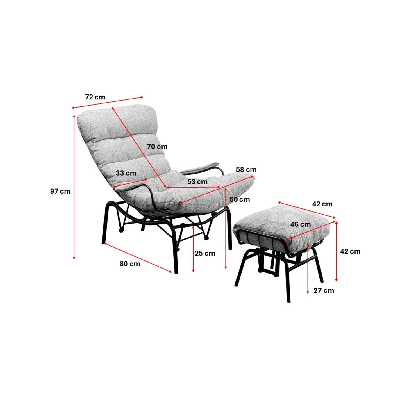 Deze fauteuil met voetensteun is de perfecte metgezel om in te ontspannen. Met zijn schommelfunctie laat hij je zachtjes ontspannen na een lange dag, of je nu een boek leest, tv kijkt of gewoon ontspant.Maximaal draagvermogen: 110 kg. Zithoogte: 40 cm. Ongemonteerd geleverd.