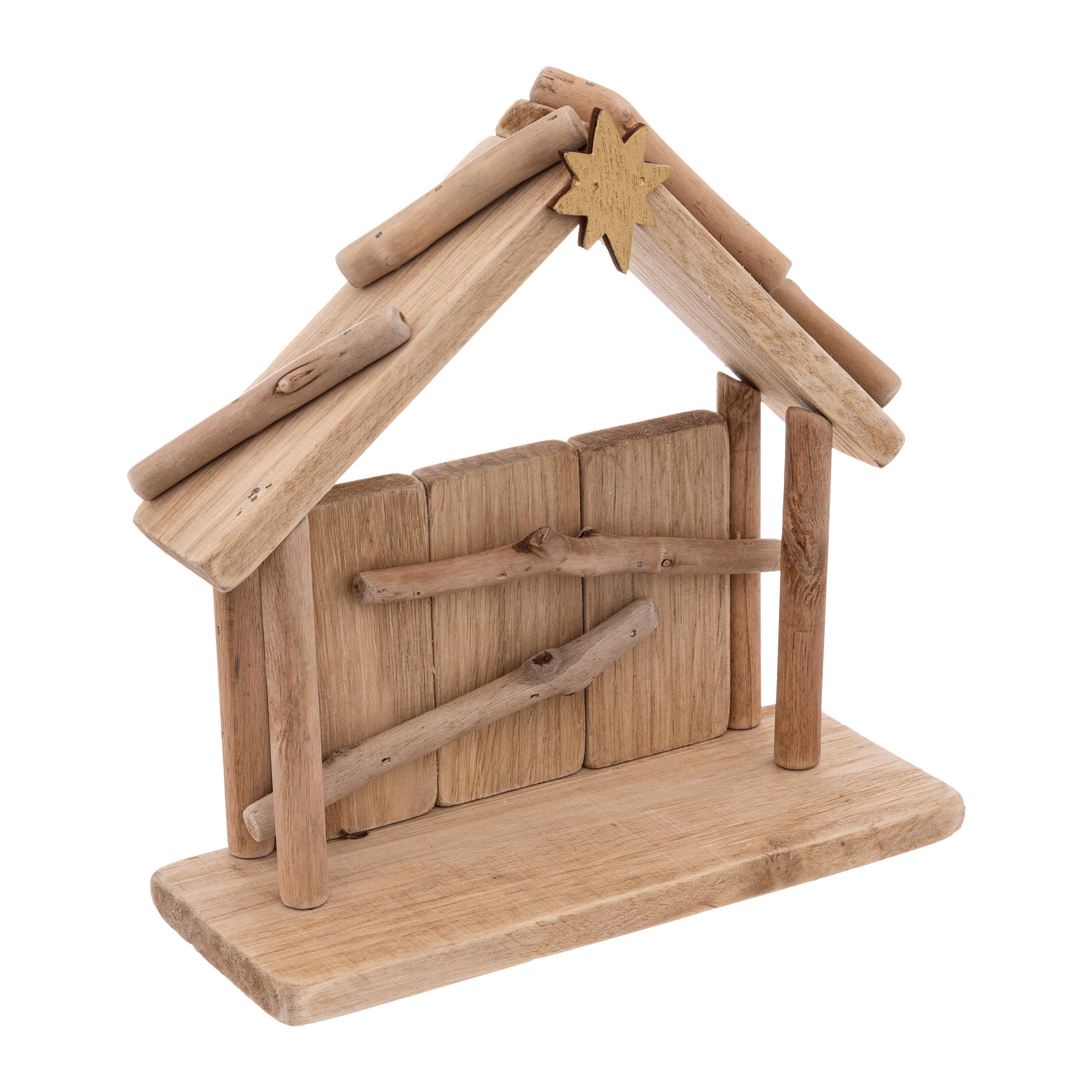 Kerststal inclusief 3 beelden. Dit charmante kerststalletje, compleet met beeldjes van Maria, Jozef en de pasgeboren Jezus, een heeft afmeting van ongeveer 20 x 8 x 19,5 cm. Gemaakt van een combinatie van hout, straalt dit stalletje een rustieke en traditionele uitstraling uit die perfect past bij de kerstsfeer. De beeldjes, gemaakt van polyresin, van Maria, Jozef en Jezus voegen een gevoel van devotie en sereniteit toe aan elke ruimte waarin ze worden geplaatst. Of het nu op een mantel, vensterbank of kersttafel staat, dit kerststalletje geeft een warme en uitnodigende sfeer.