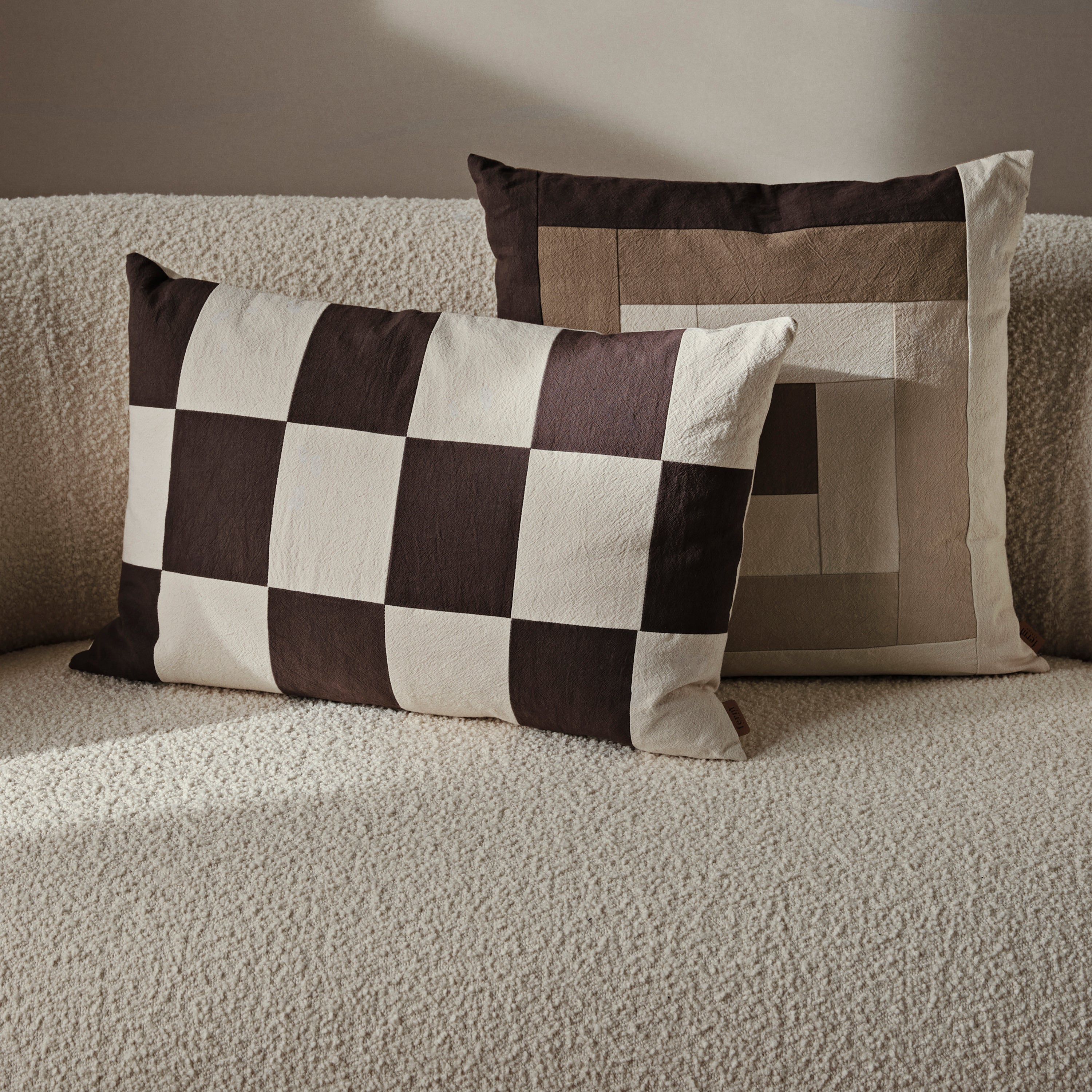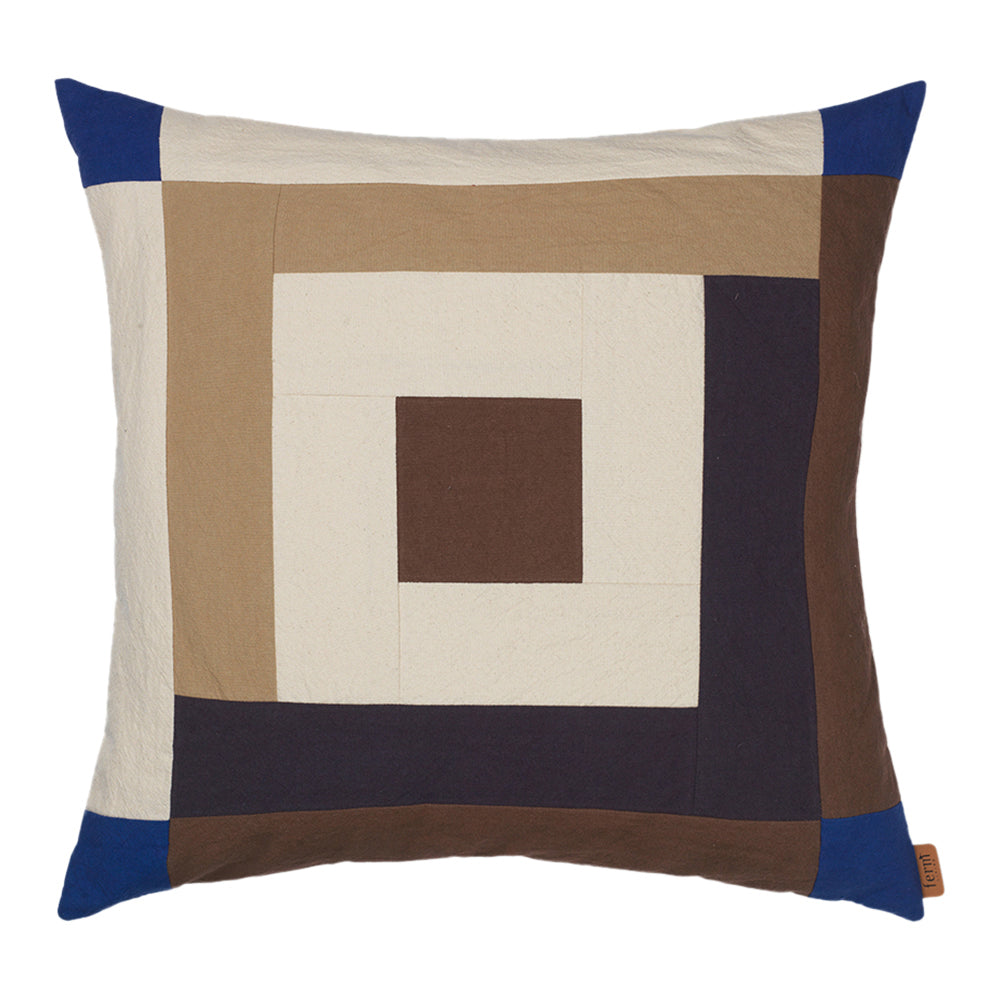 Ferm Living Border Patchwork Sierkussen - Carob Brown/Bright Blue