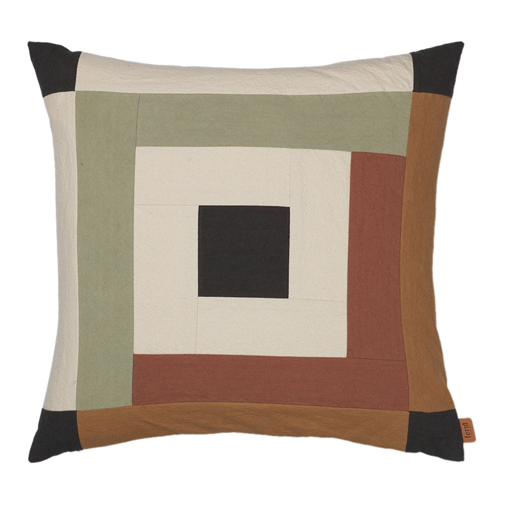 Ferm Living Border Patchwork Sierkussen - Dark Sage/Red Brown