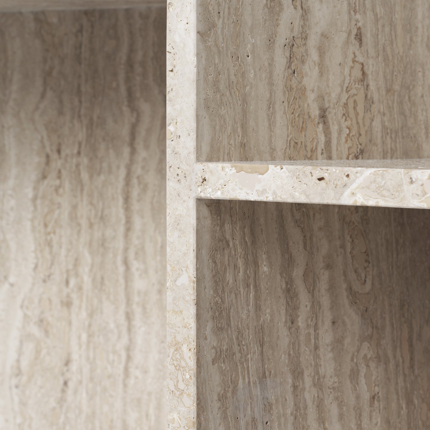 - Gemaakt van zandkleurig travertijn