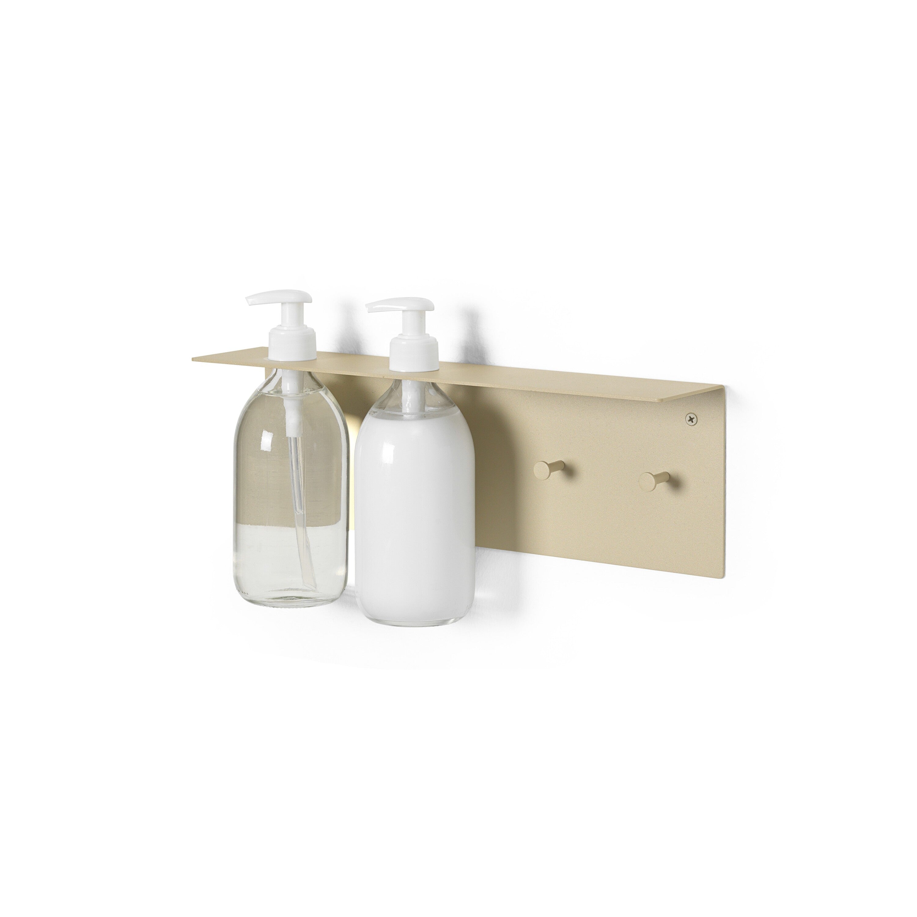 - 2 gaten voor zeepflessen en 2 haken om iets op te hangen