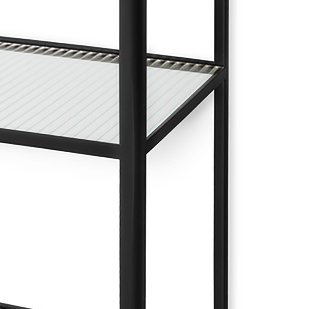 De Haze stellingkast van Ferm Living is gemaakt van gepoedercoat metaal en heeft daardoor een stoere uitstraling. Het gestreepte patroon op de glazen planken zorgt voor een extra detail. Deze stellingkast is ideaal om je woonaccessoires te presenteren.