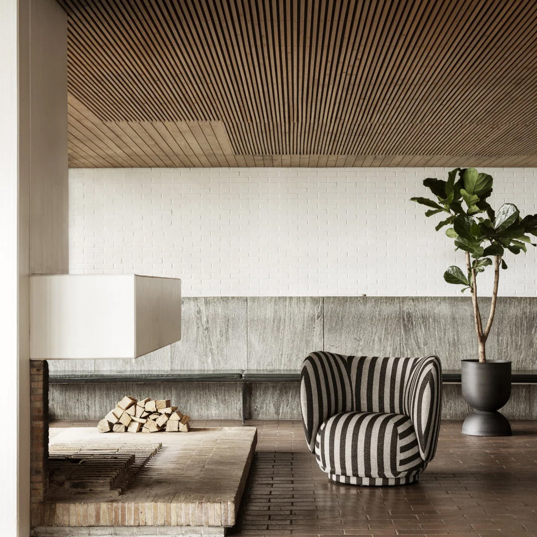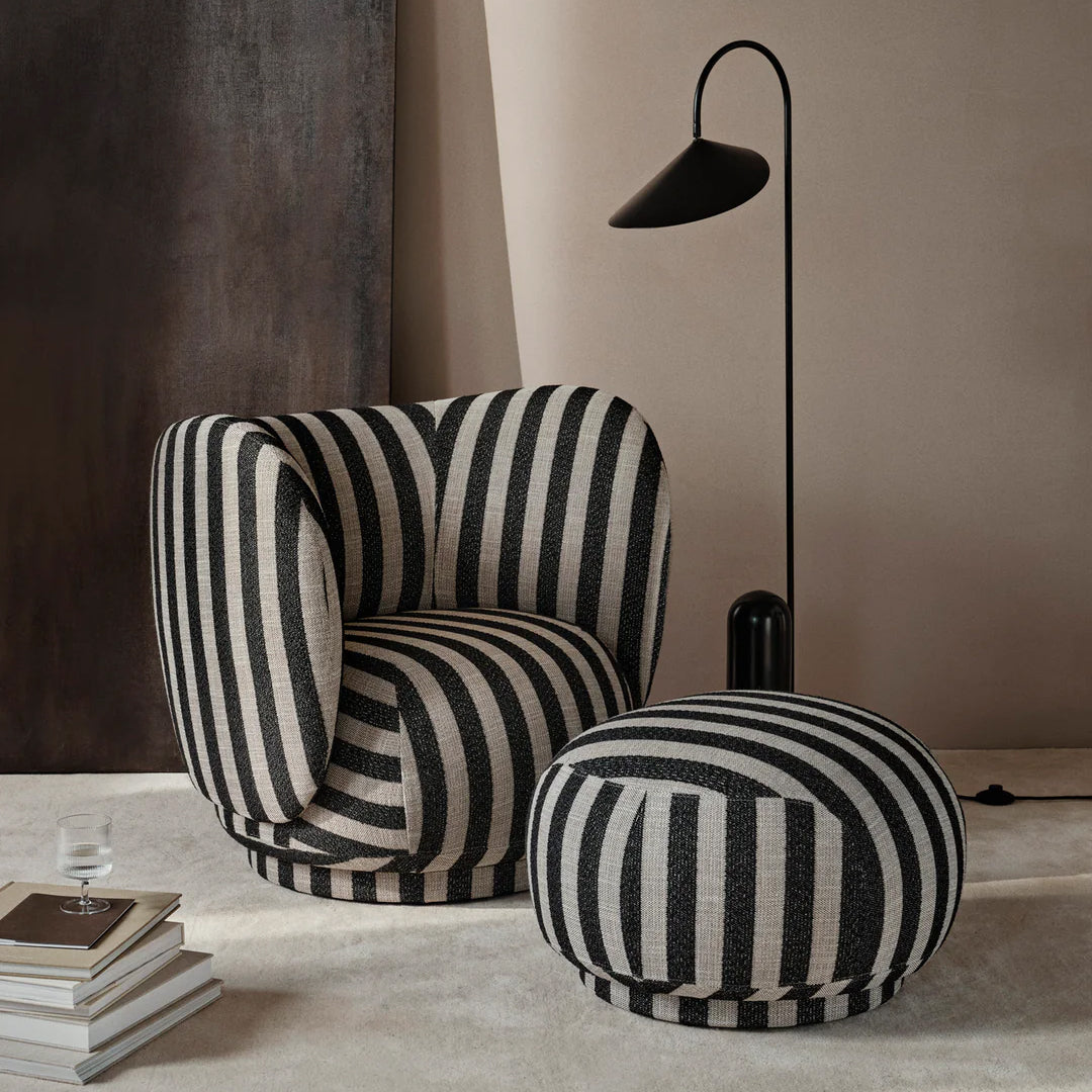 De ferm LIVING x Louisana Rico fauteuil is de perfecte stoel om lekker in te chillen. De gebogen vorm en de unieke, gestreepte stof in samenwerking met het Louisiana Museum of Modern Art zorgen voor een echt kunstwerk in je ruimte!
