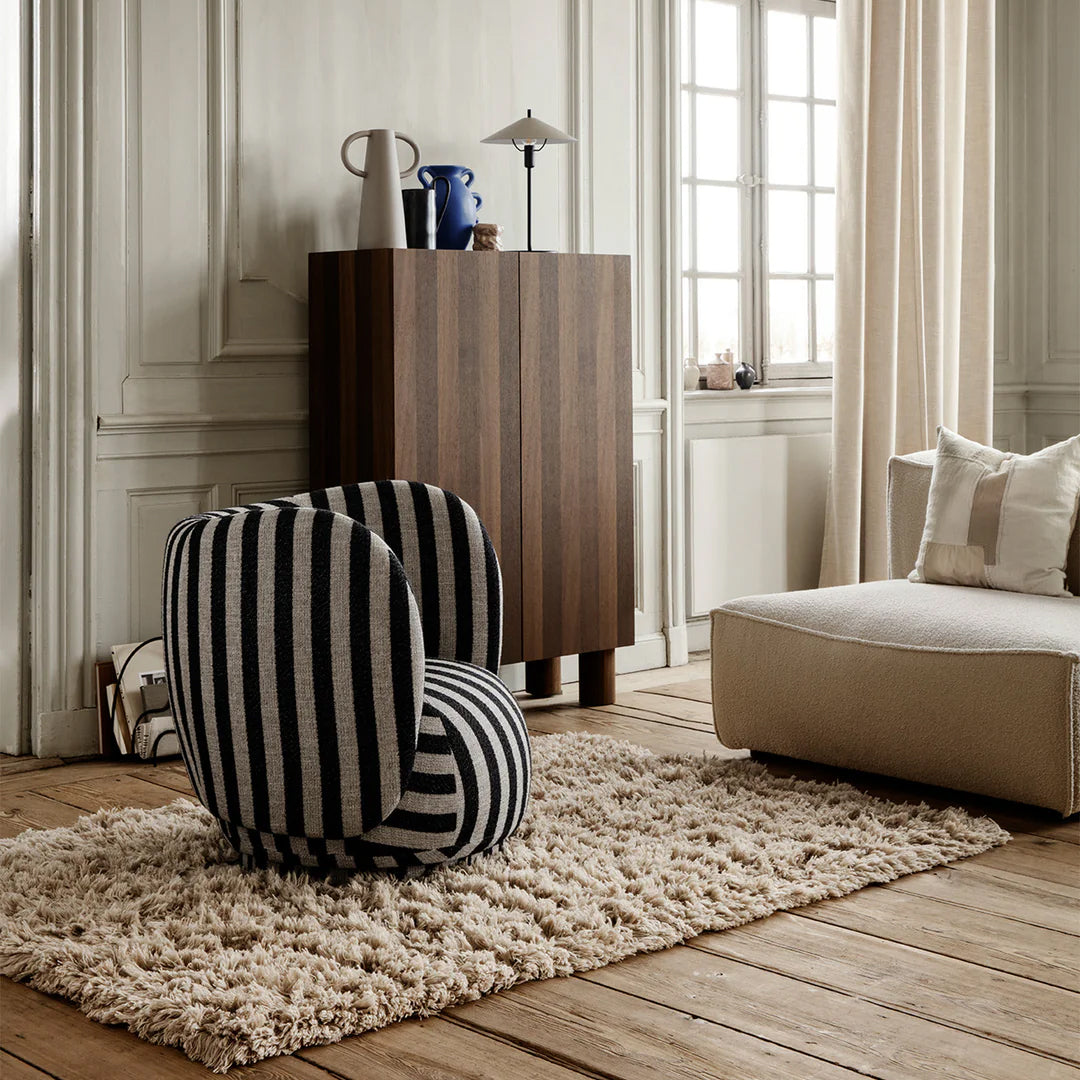 De ferm LIVING x Louisana Rico fauteuil is de perfecte stoel om lekker in te chillen. De gebogen vorm en de unieke, gestreepte stof in samenwerking met het Louisiana Museum of Modern Art zorgen voor een echt kunstwerk in je ruimte!