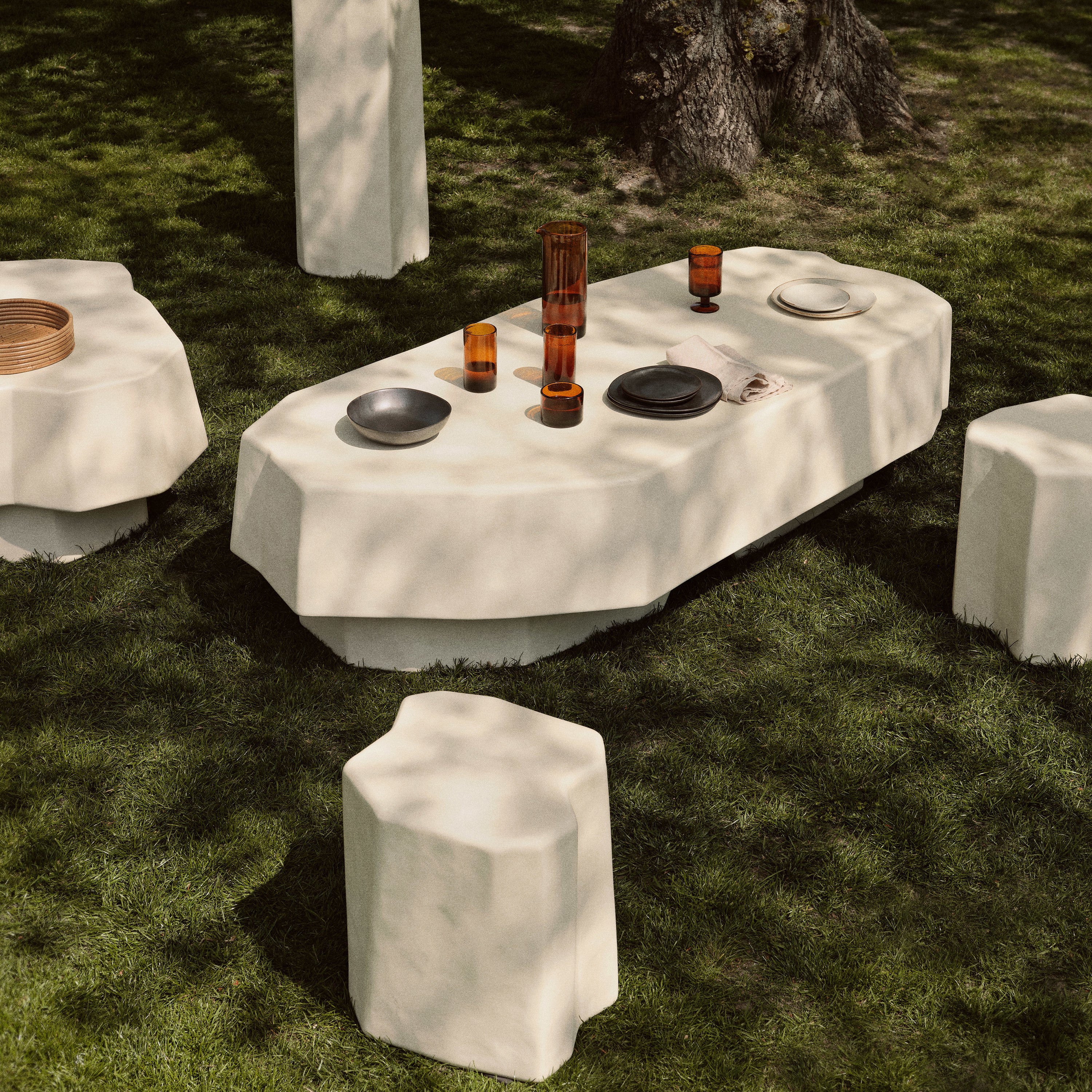 Geïnspireerd door de unieke vulkanische rotsformaties op het oude eiland Staffa in Schotland, bestaat de Staffa-collectie uit een reeks gewaagde meubelstukken. Het stuk is volledig vervaardigd uit glasvezelversterkt beton, met behulp van een innovatief gietproces dat elk item een ruwe, ongelijke vorm geeft die doet denken aan blokken uitgehouwen steen. De Staffa Kruk is geschikt voor zowel binnen- als buitengebruik en gebruik hem als kruk of bijzettafel.
