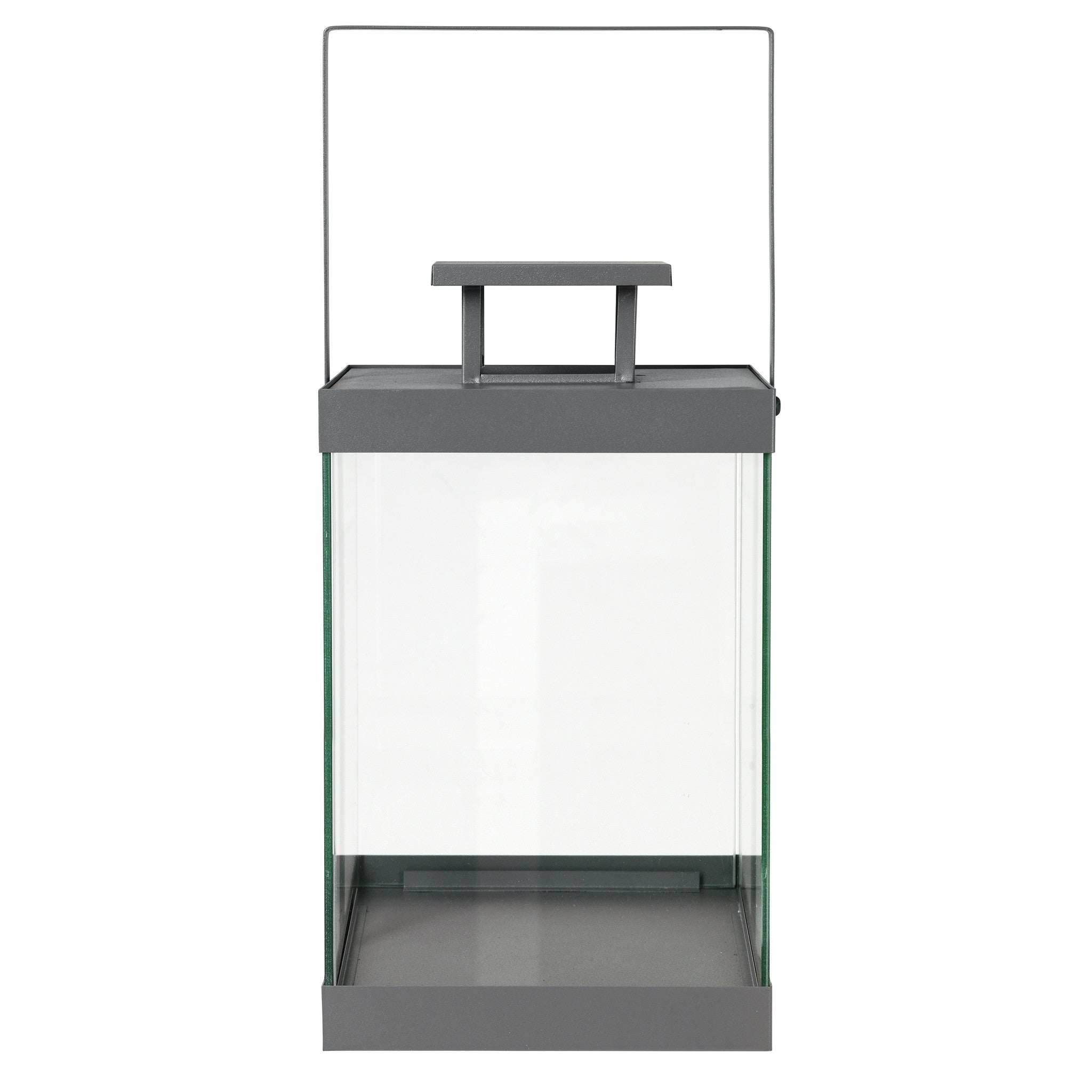 - Een strak vormgegeven windlicht gemaakt van zwart gepoedercoat staal en helder glas.