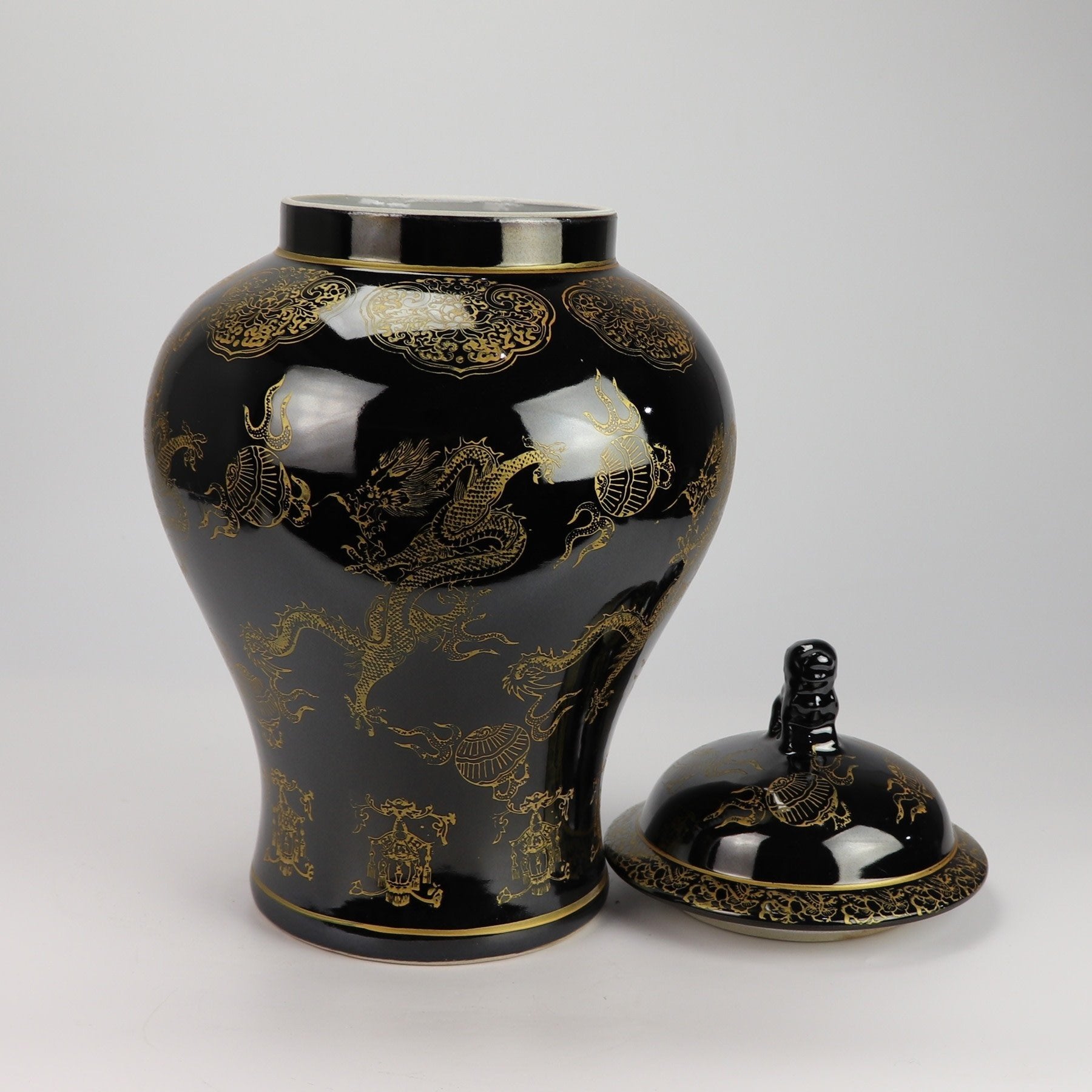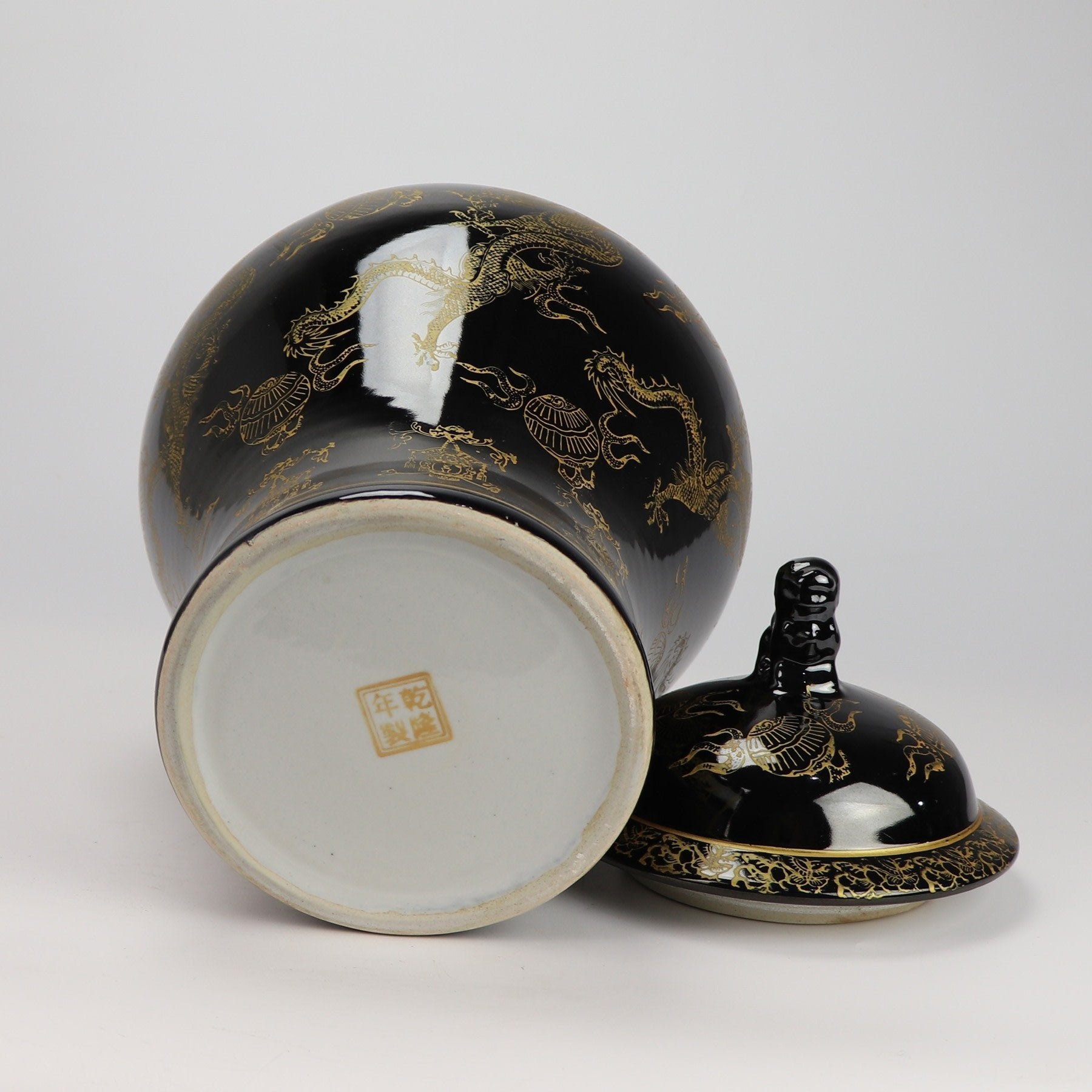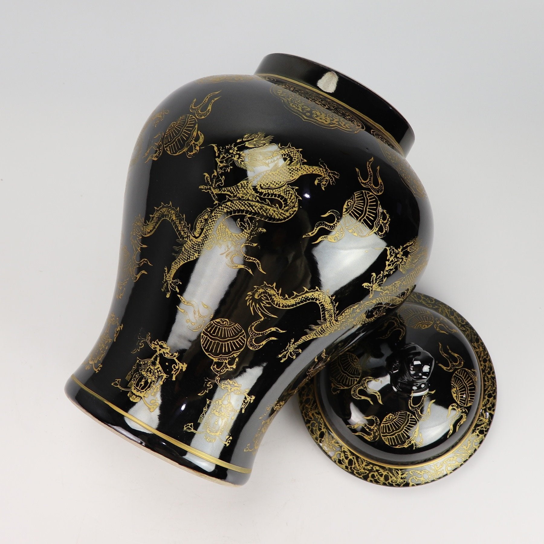 Chinese Gemberpot Porselein Zwart Draak Handgeschilderd D29xH46cm
