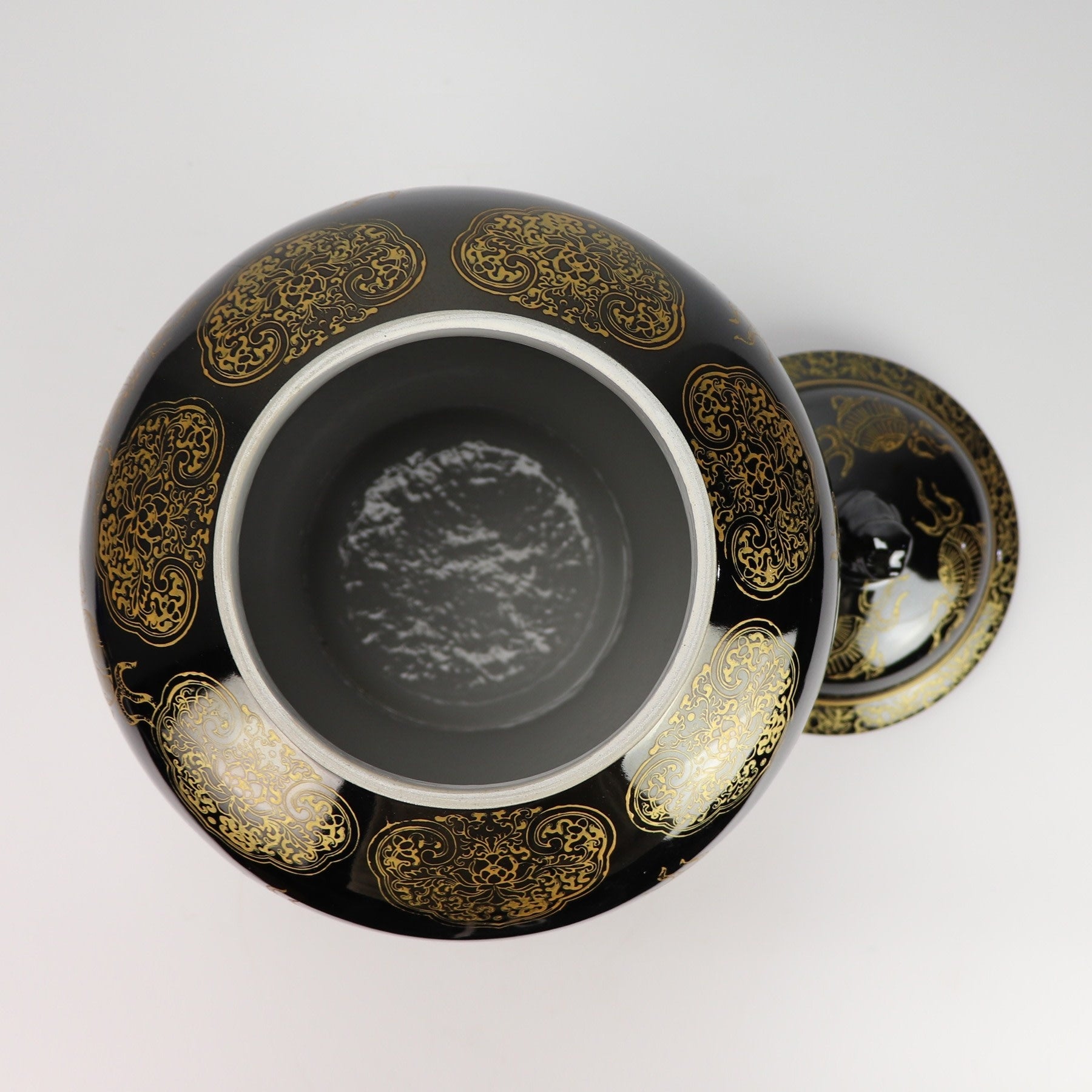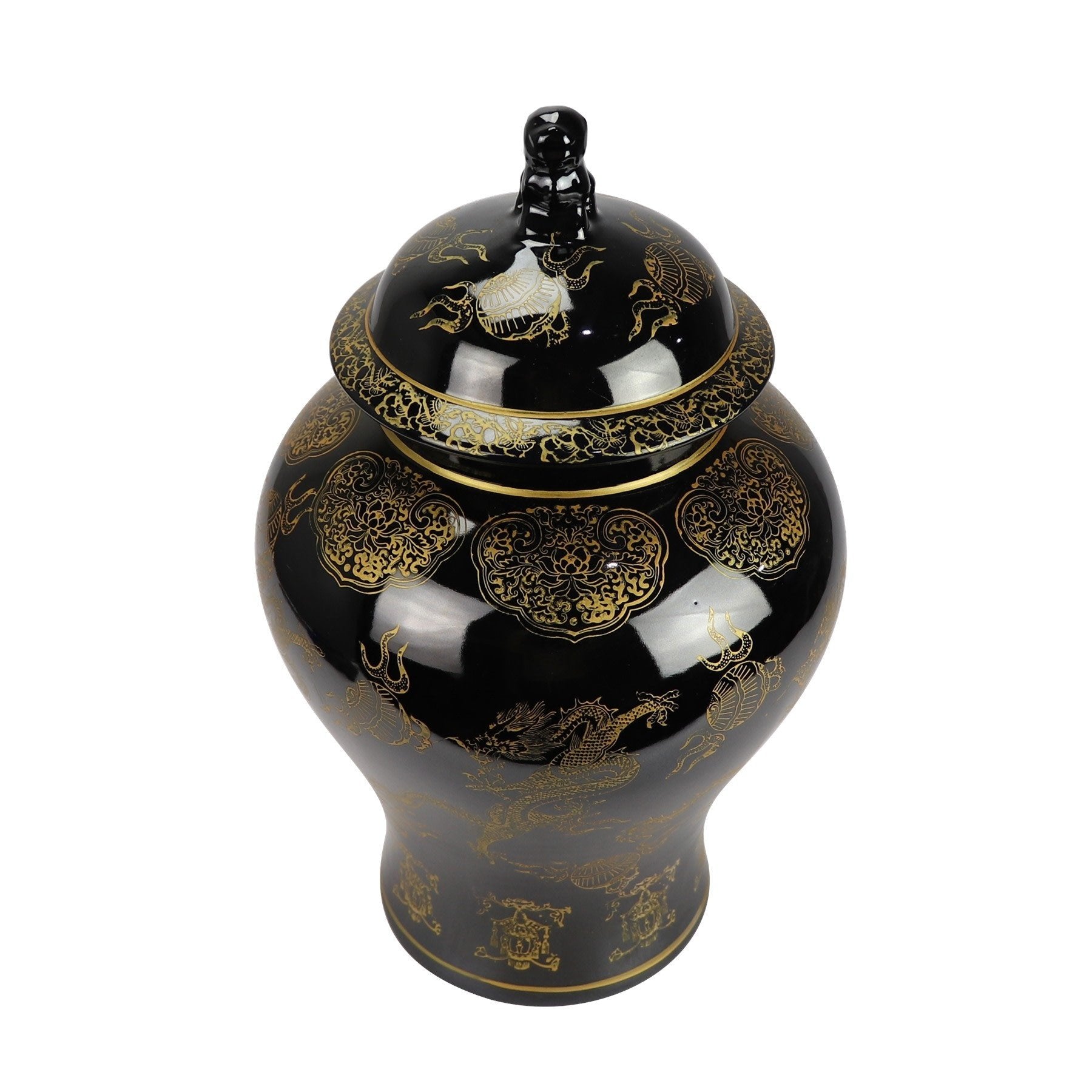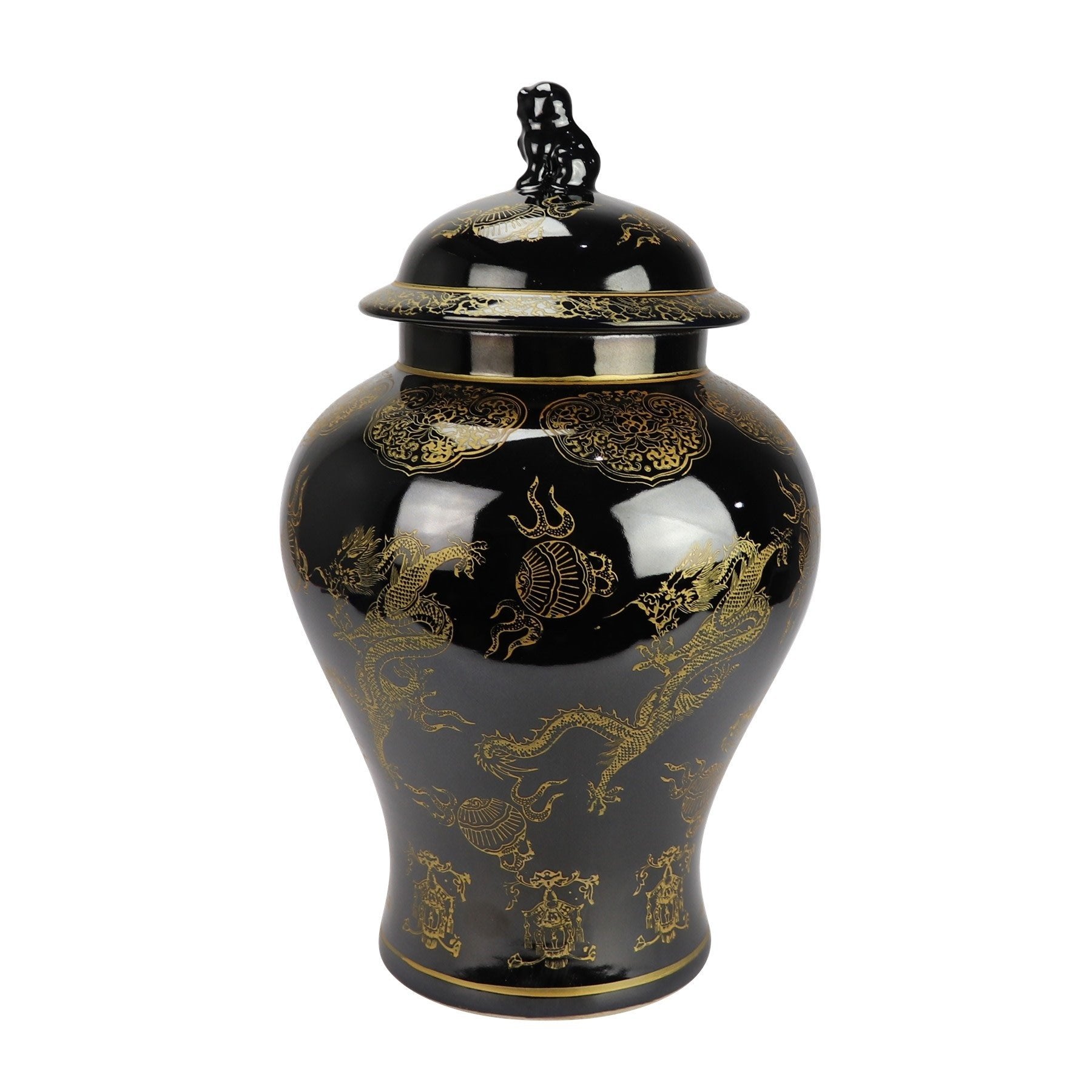 Chinese Gemberpot Porselein Zwart Draak Handgeschilderd D29xH46cm