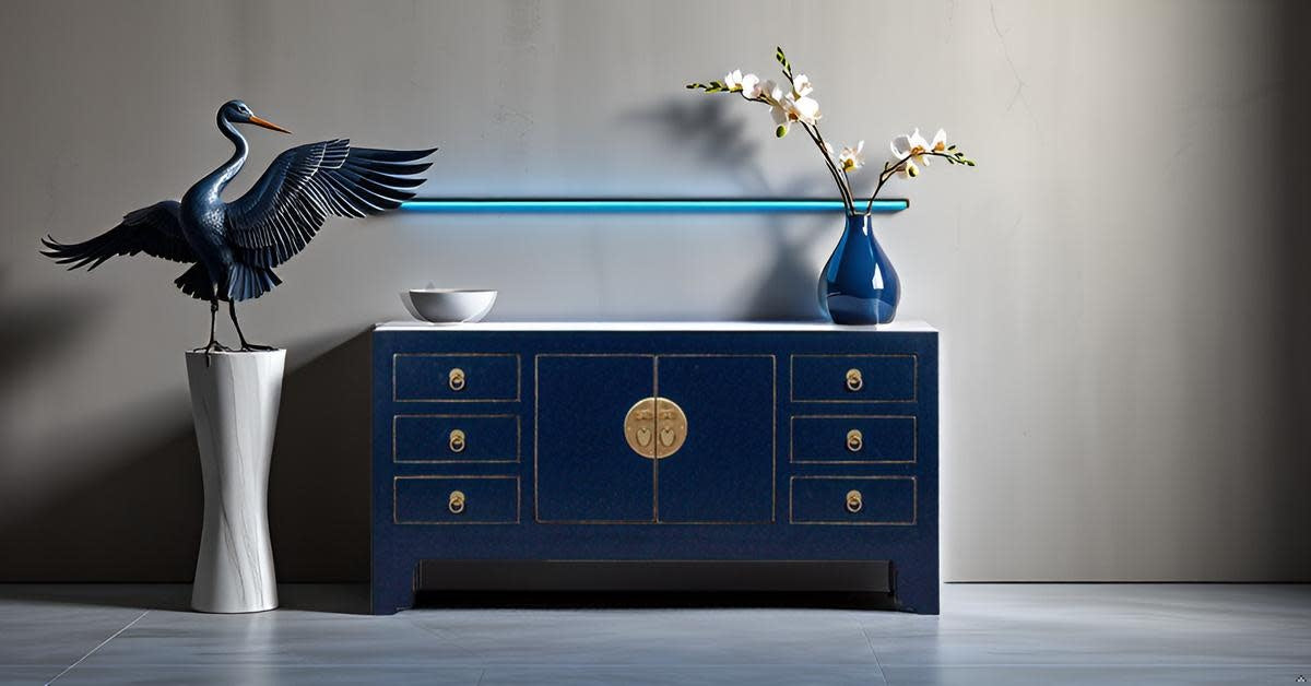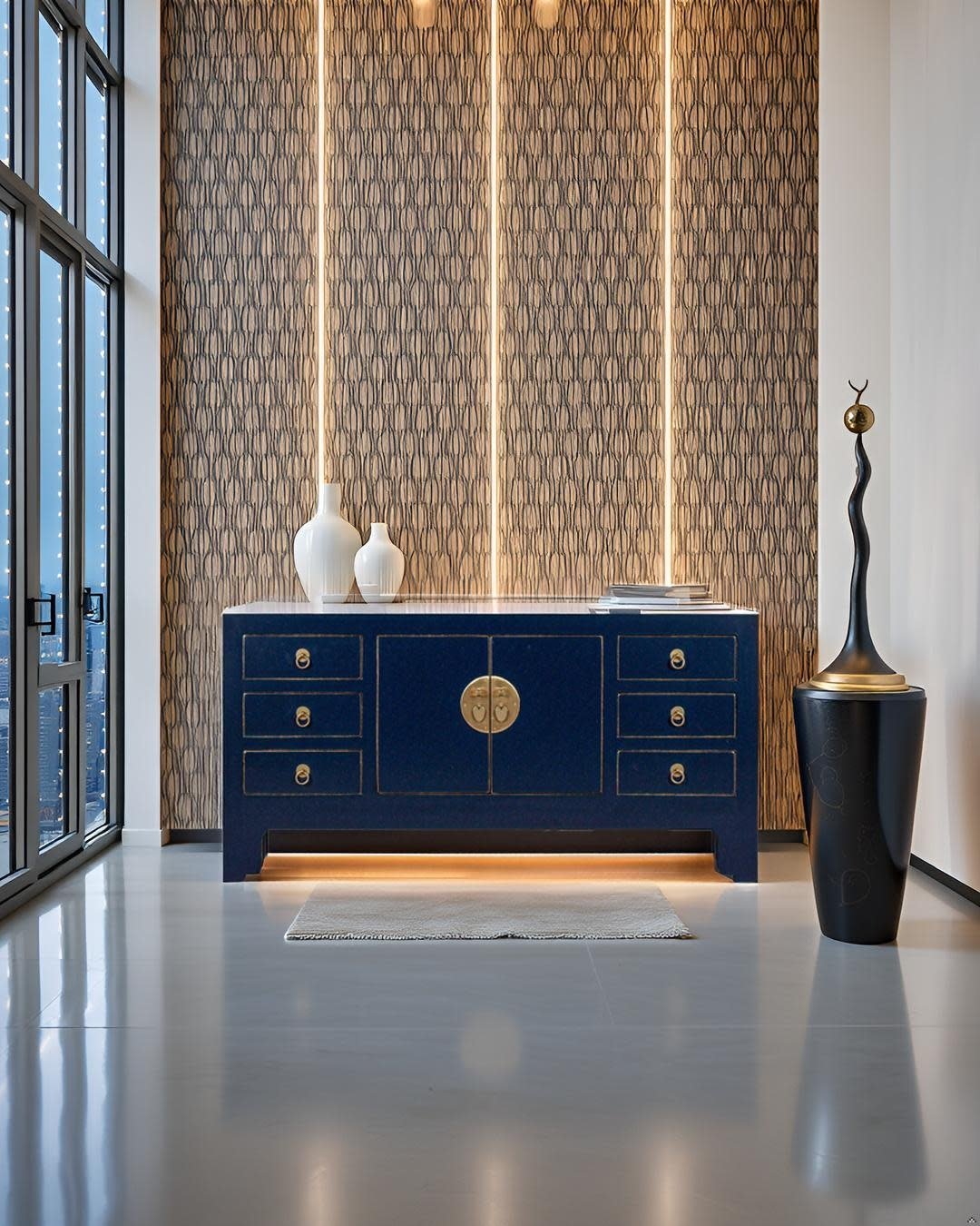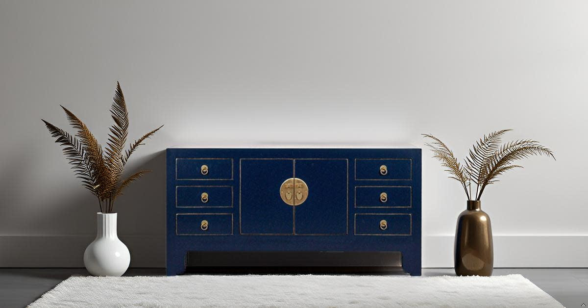 Fine Asianliving Chinese TV Kast Midnight Blauw -