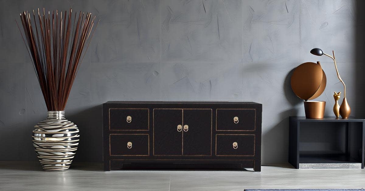 Chinese TV Kast Onyx Zwart - Orientique Collectie B106xD45xH46cm