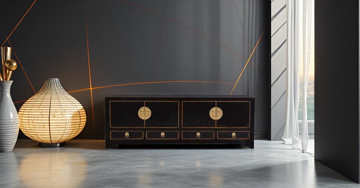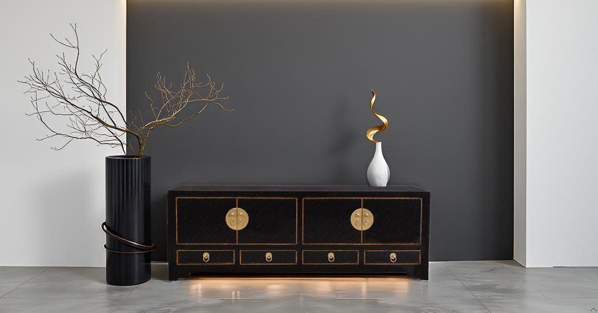 Fine Asianliving Chinese TV Kast Onyx Zwart -