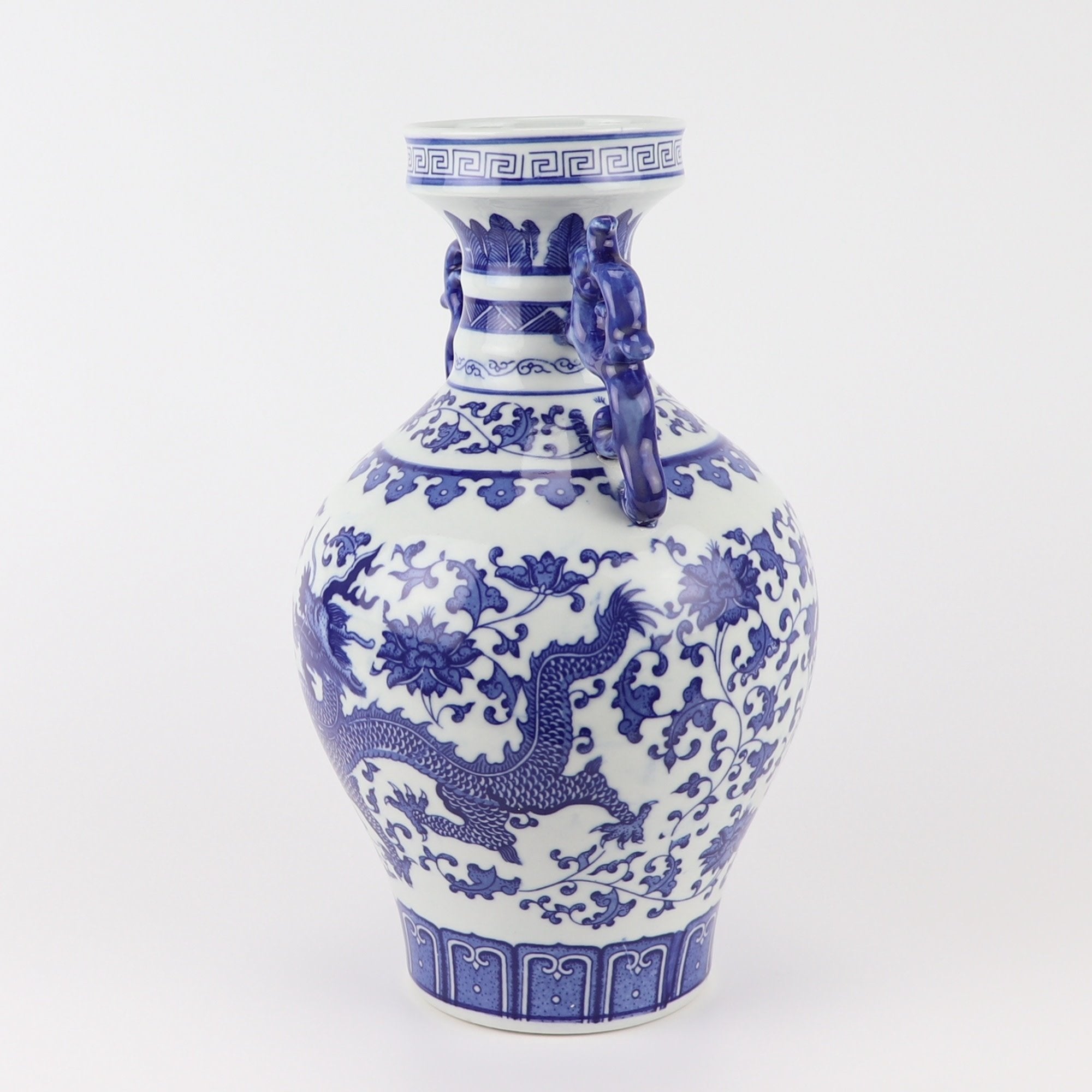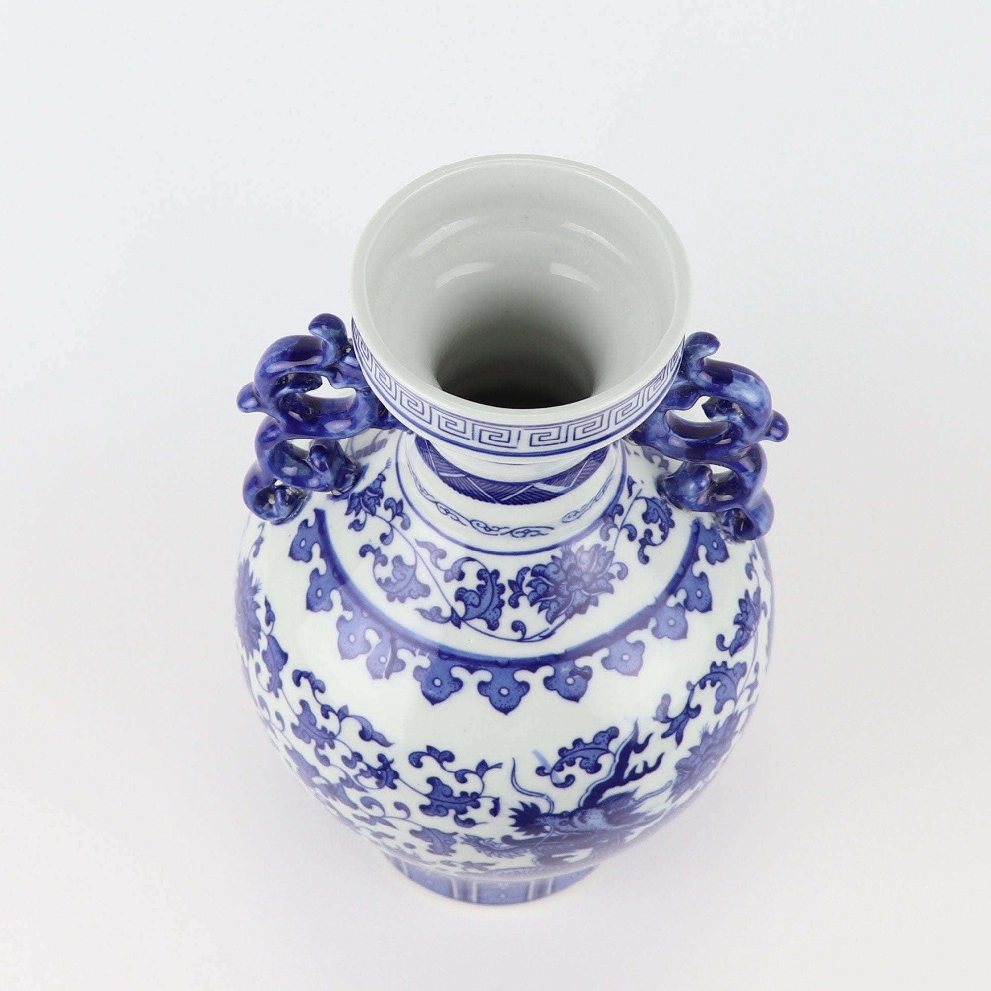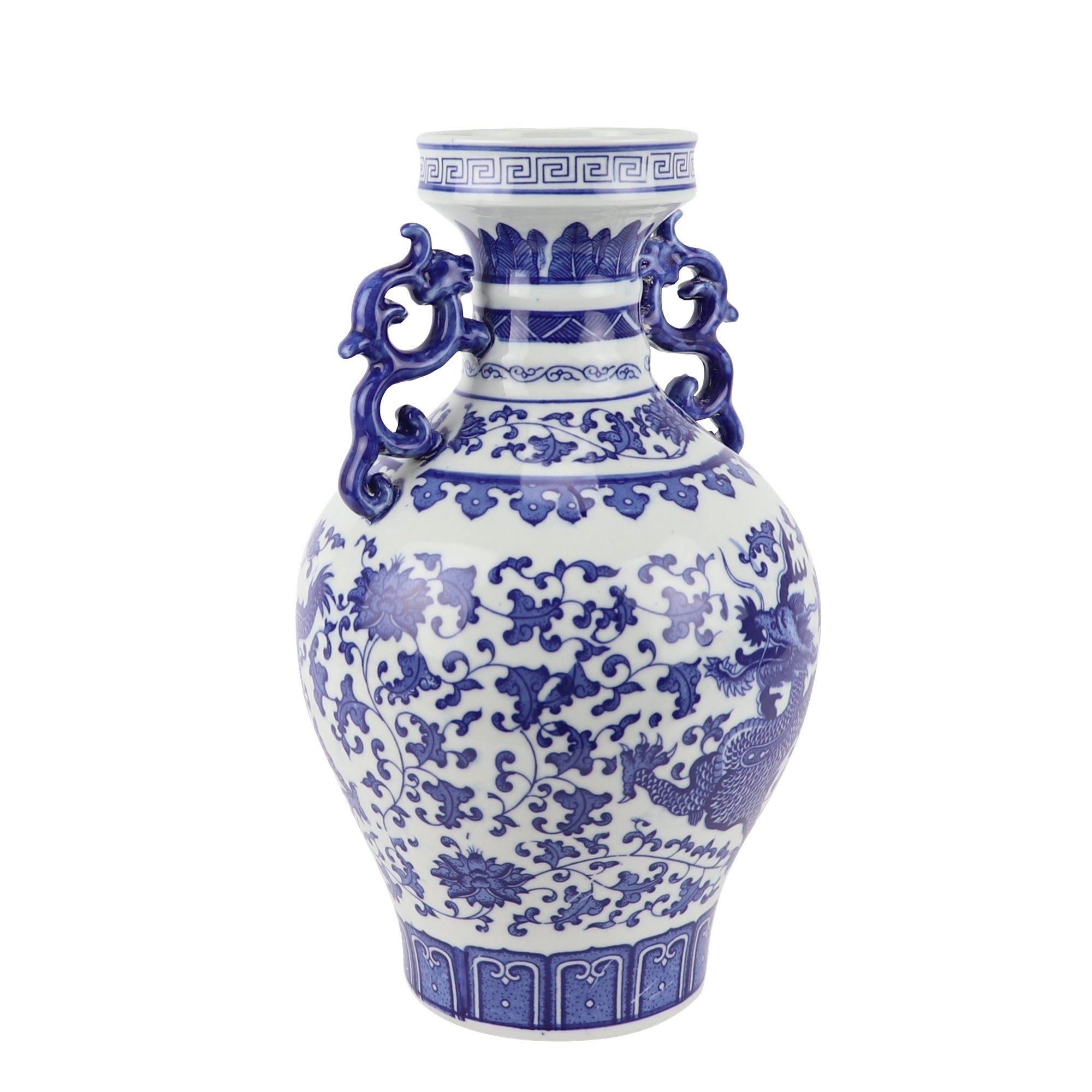 Fine Asianliving Chinese Vaas Blauw Wit Porselein