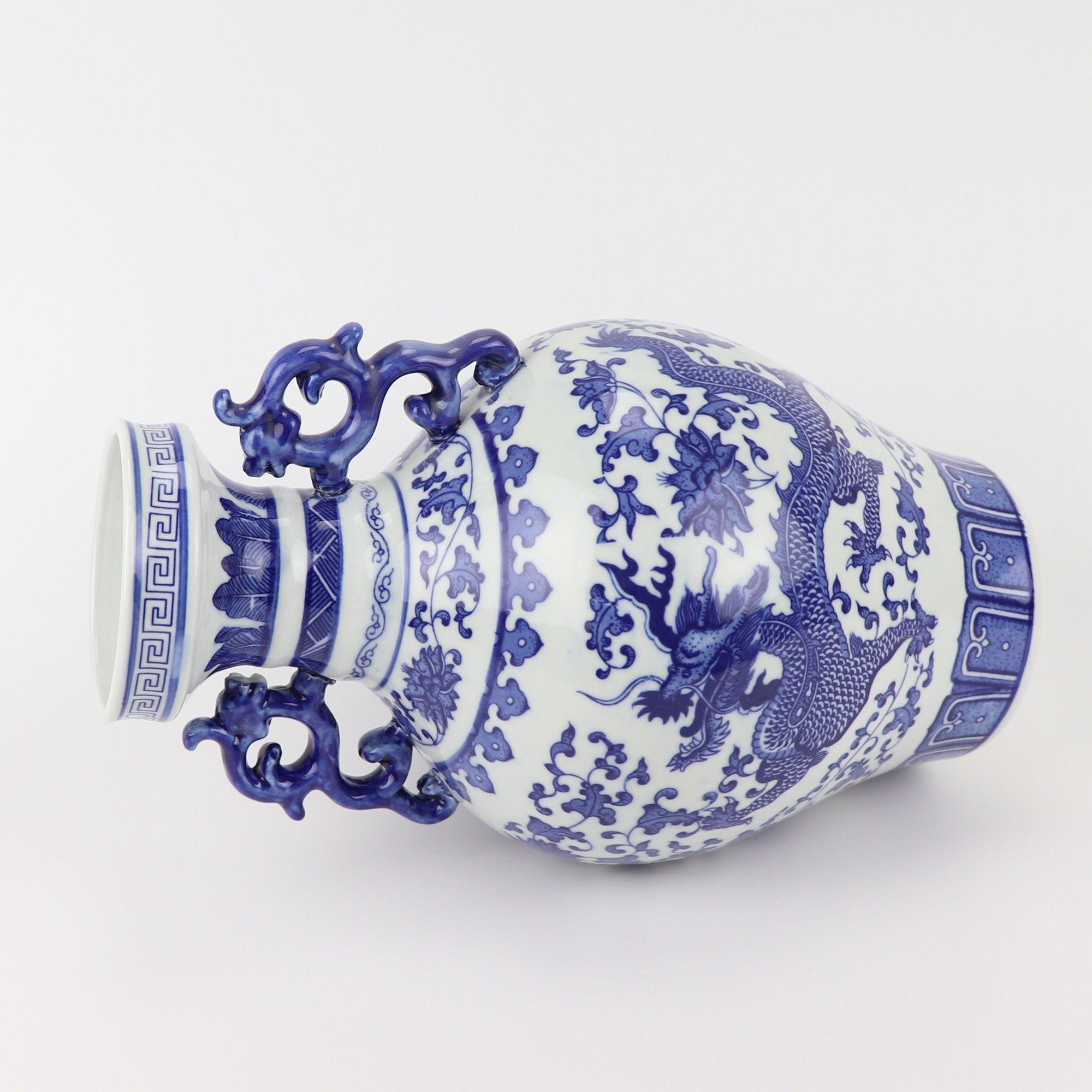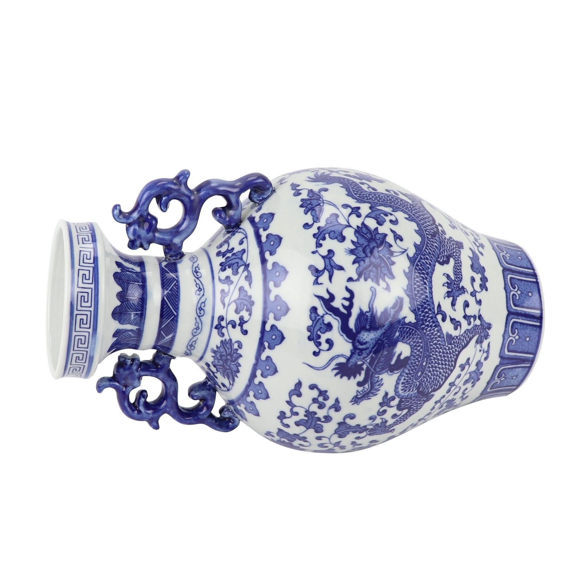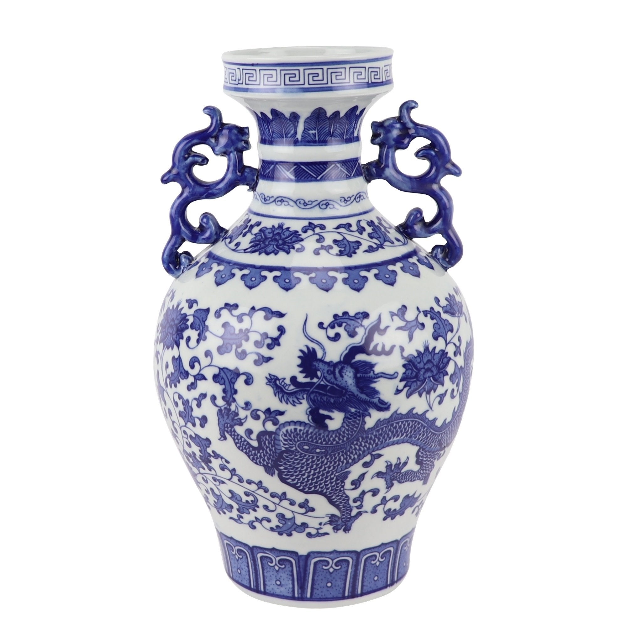 Fine Asianliving Chinese Vaas Blauw Wit Porselein