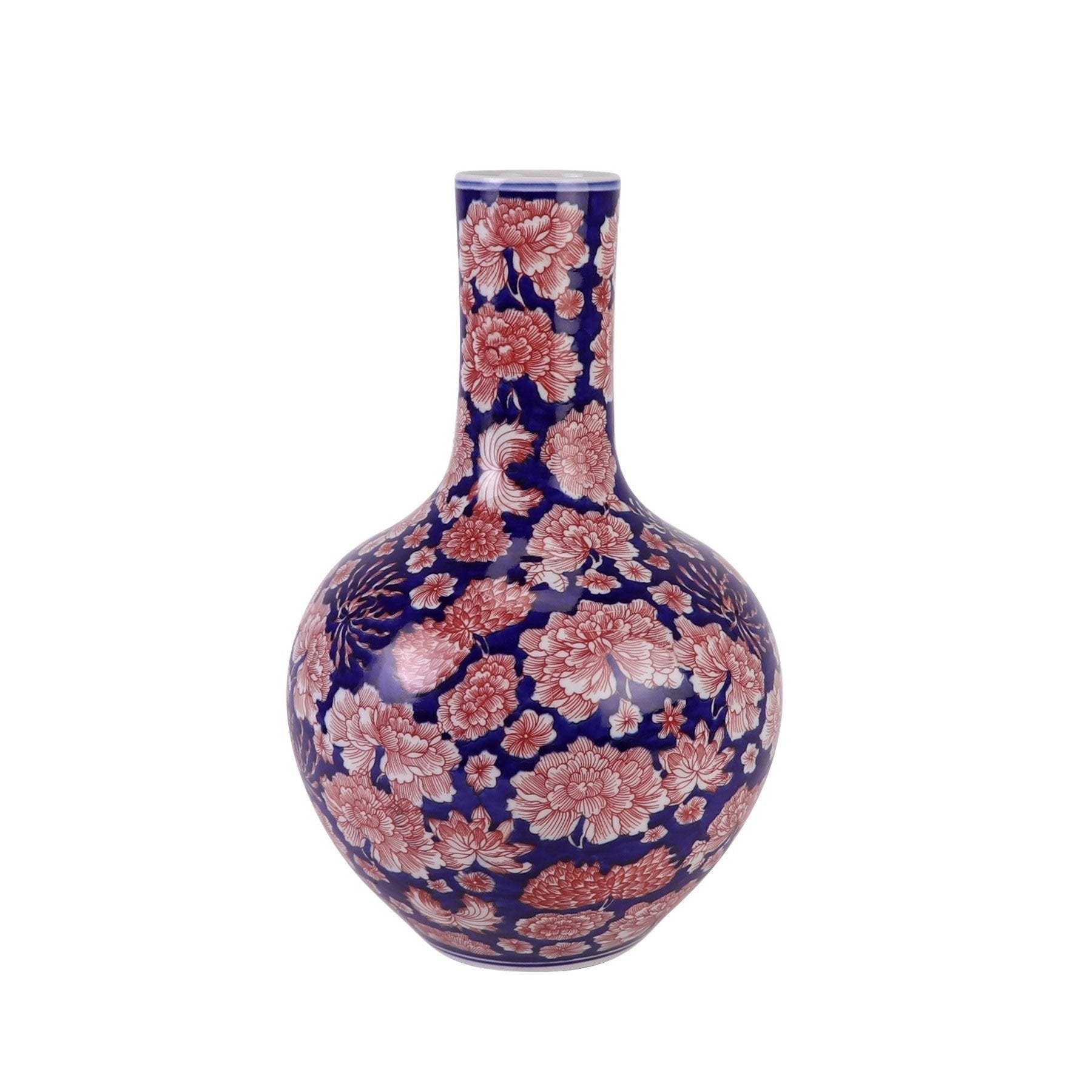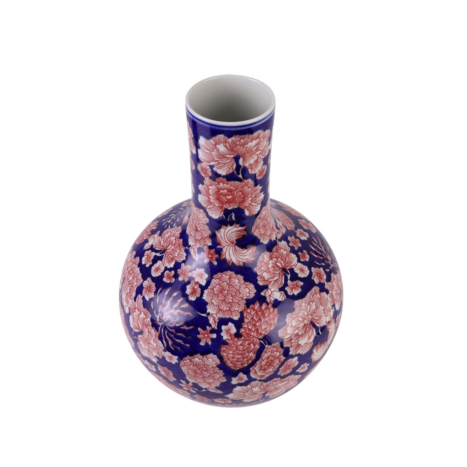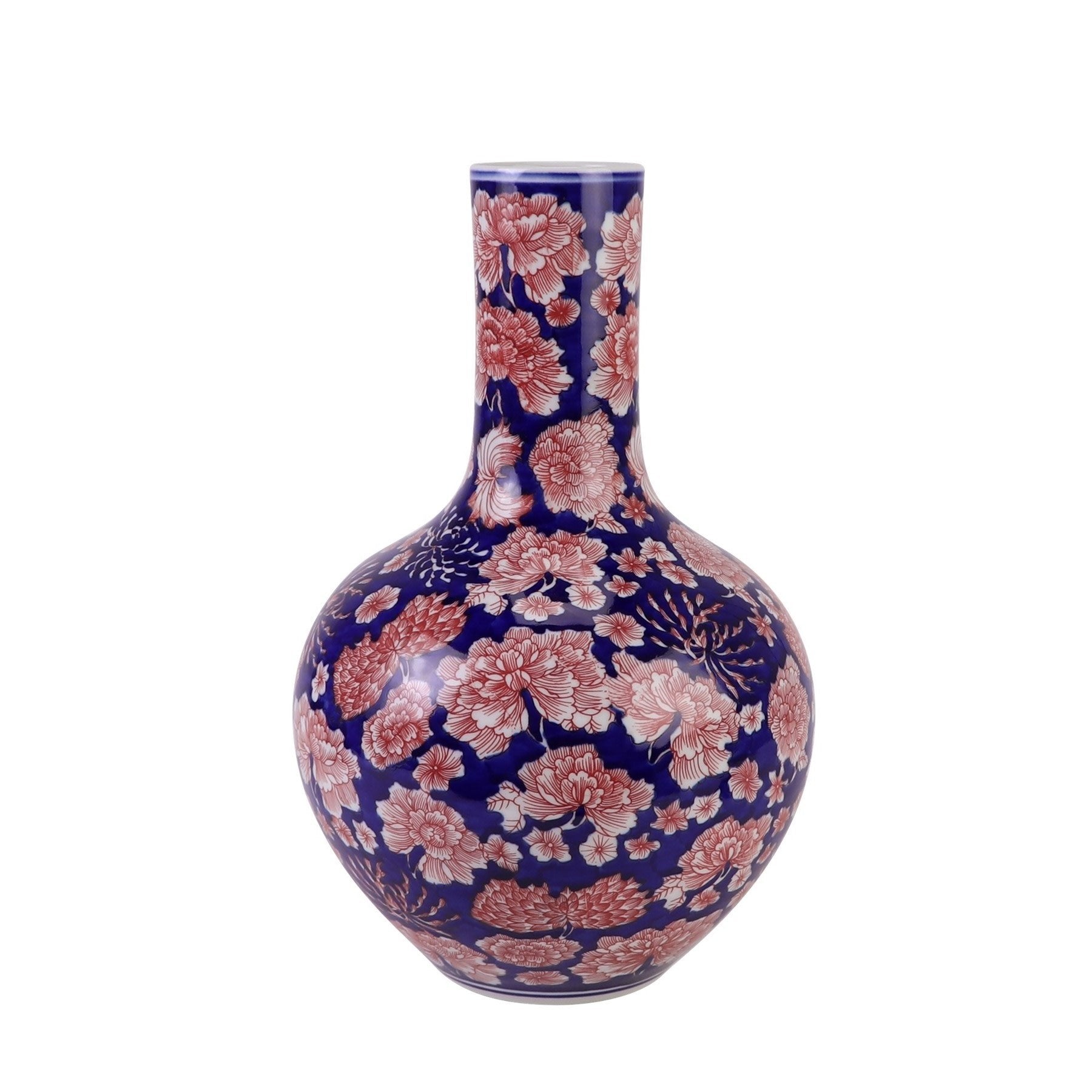 Fine Asianliving Chinese Vaas Porselein Blauw Rood