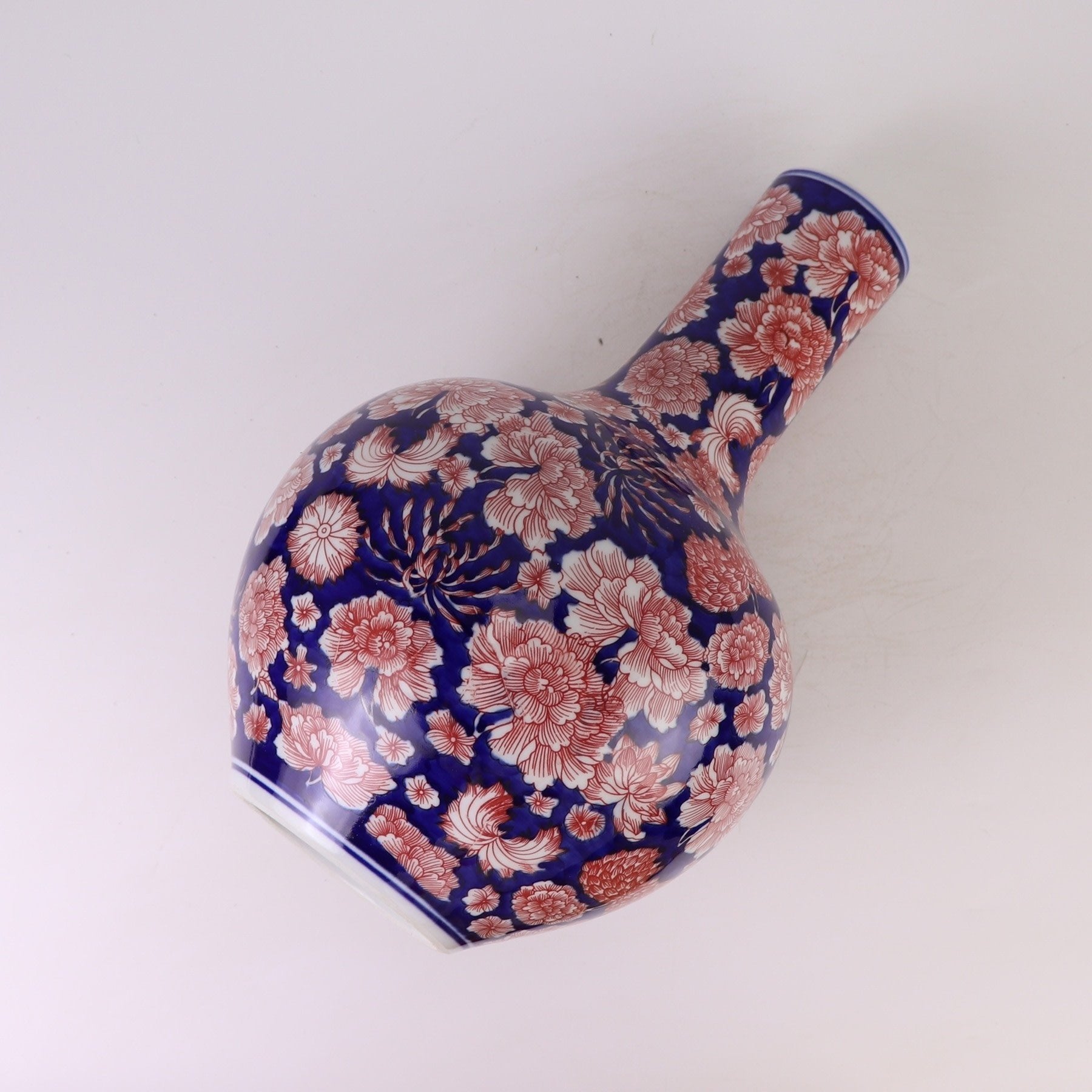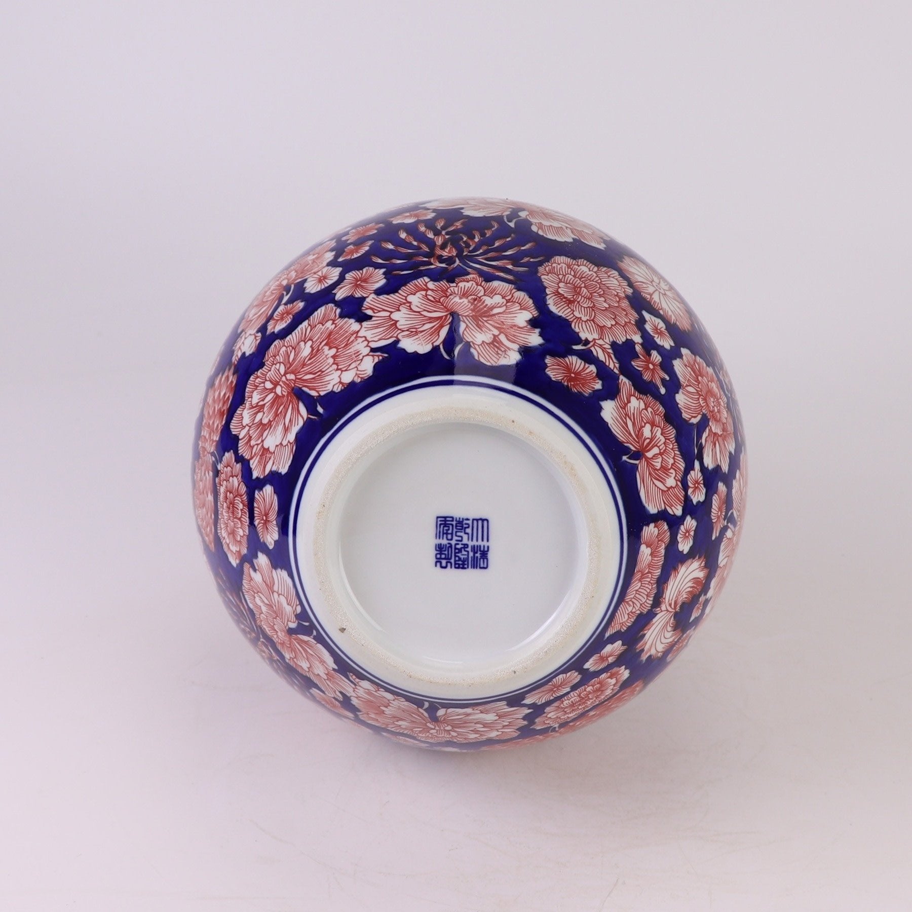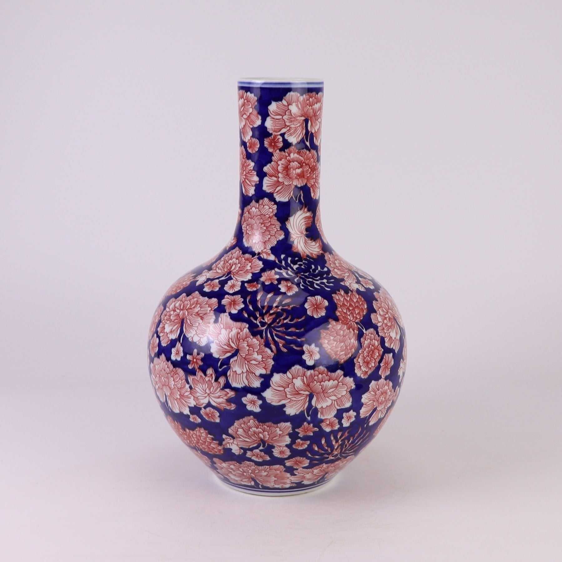 Fine Asianliving Chinese Vaas Porselein Blauw Rood