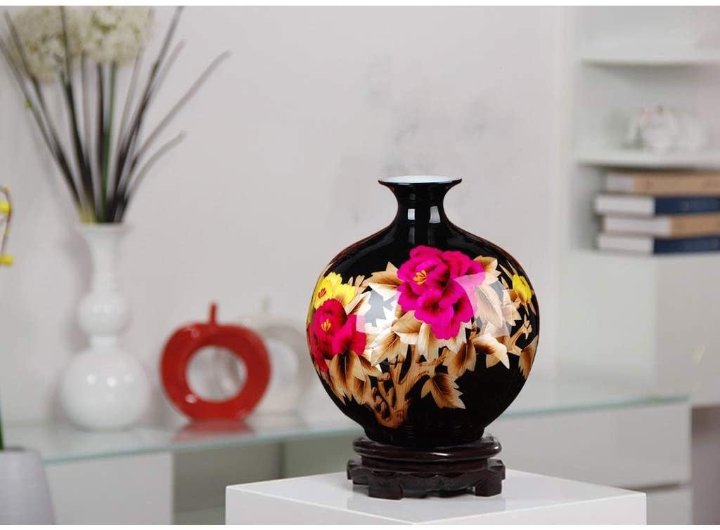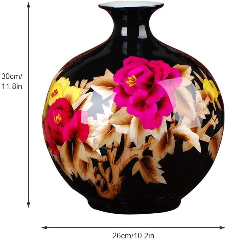 Fine Asianliving Chinese Vaas Porselein Handgemaakt Tarwe Stro Zwart H29.5cm