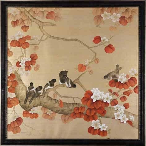 Fine Asianliving Oosters Schilderij Beschilderde Vogels op Puur Zijde