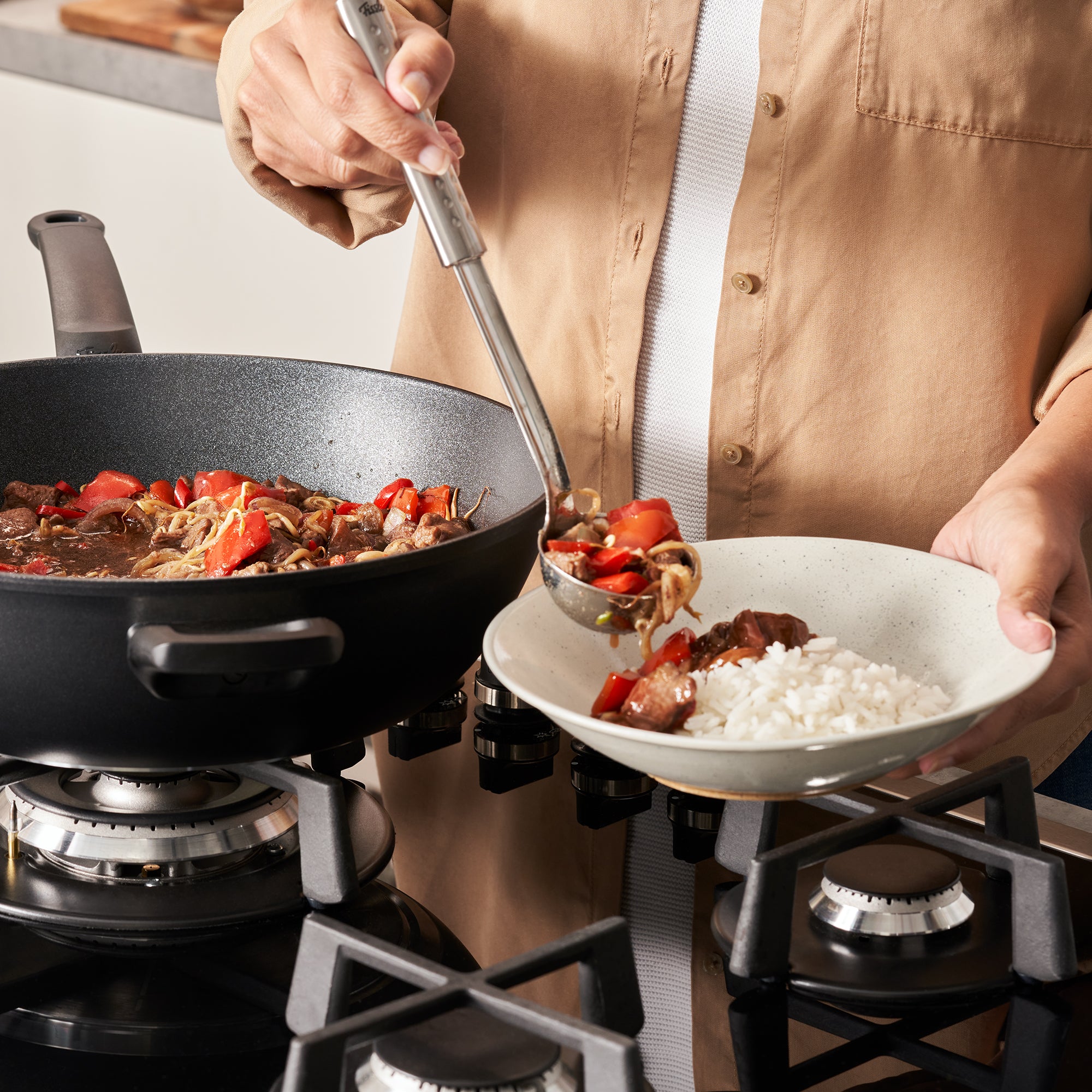 - Stevige wokpan van H 12,5 x Ø 32 cm