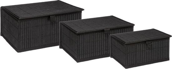 Five- Bamboe mandjes 3-delig - Zwart & Hout - Nestbaar